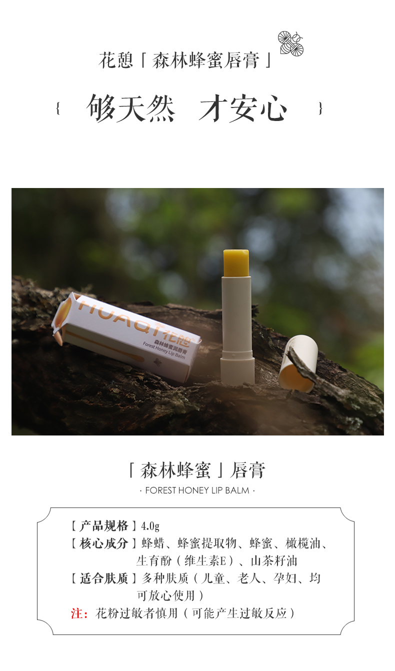 【包邮到家|花憩-森林蜂蜜润唇膏】蕴含天然蜂蜜、蜂蜡成分,能有效锁住水分,避免皮肤干燥脱皮、持久保湿,淡化唇纹。 如风生活特惠
