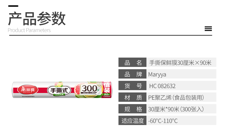 【批发】美丽雅手撕式免刀切保鲜膜大号 300张/卷