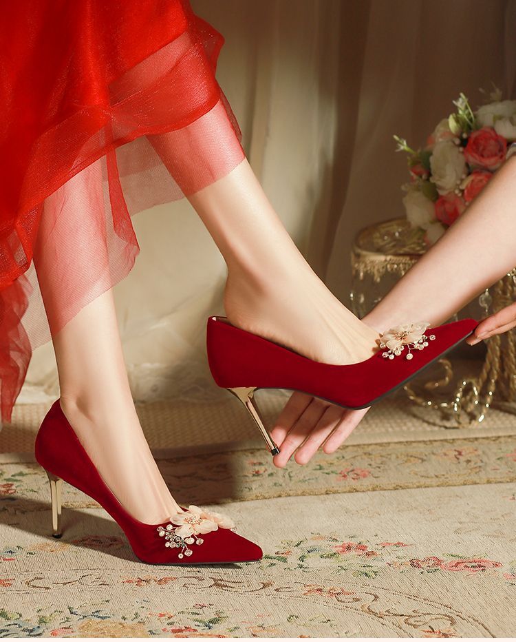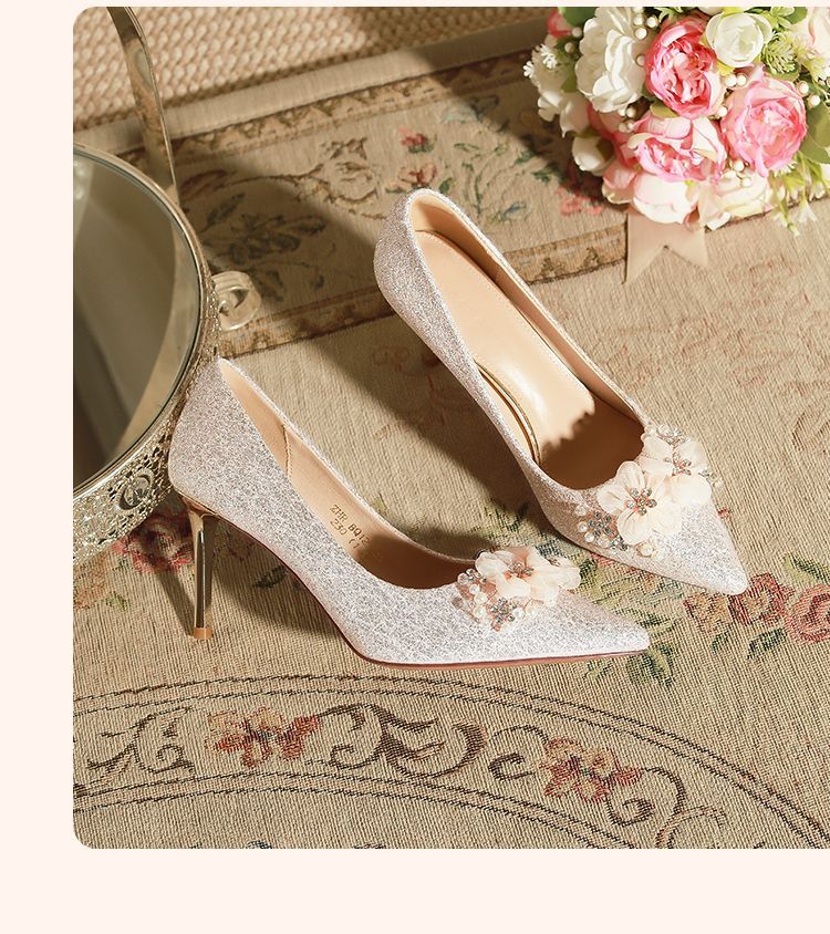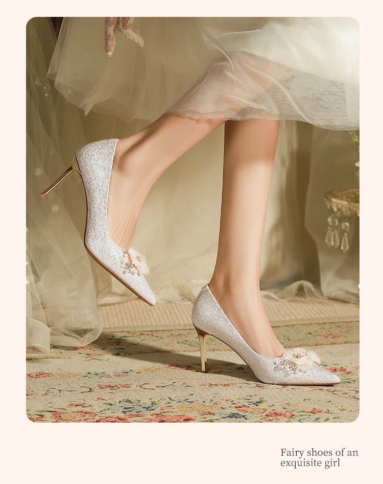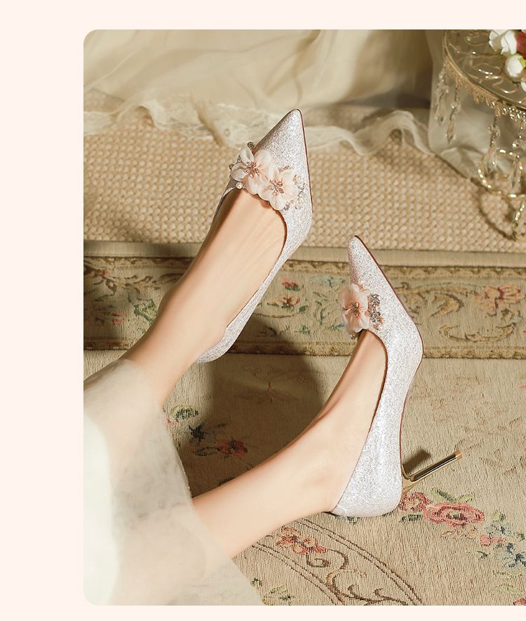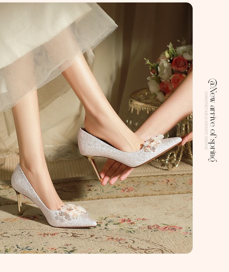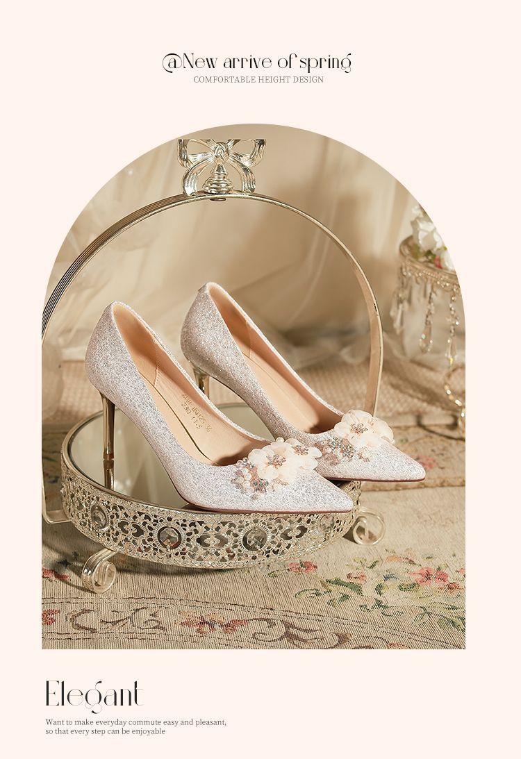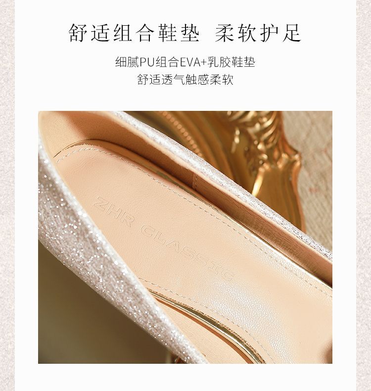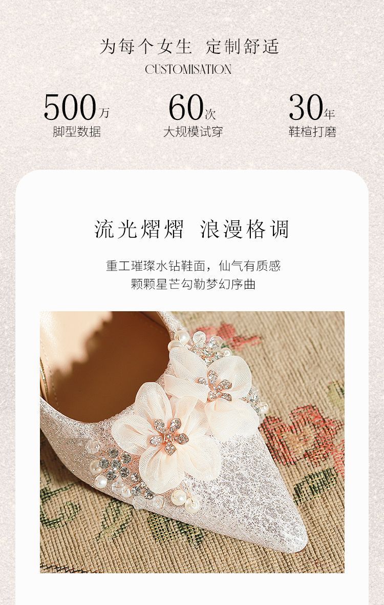 ZHR则则香槟色结婚婚鞋2025新款水晶鞋结婚新娘花朵新中式高跟鞋