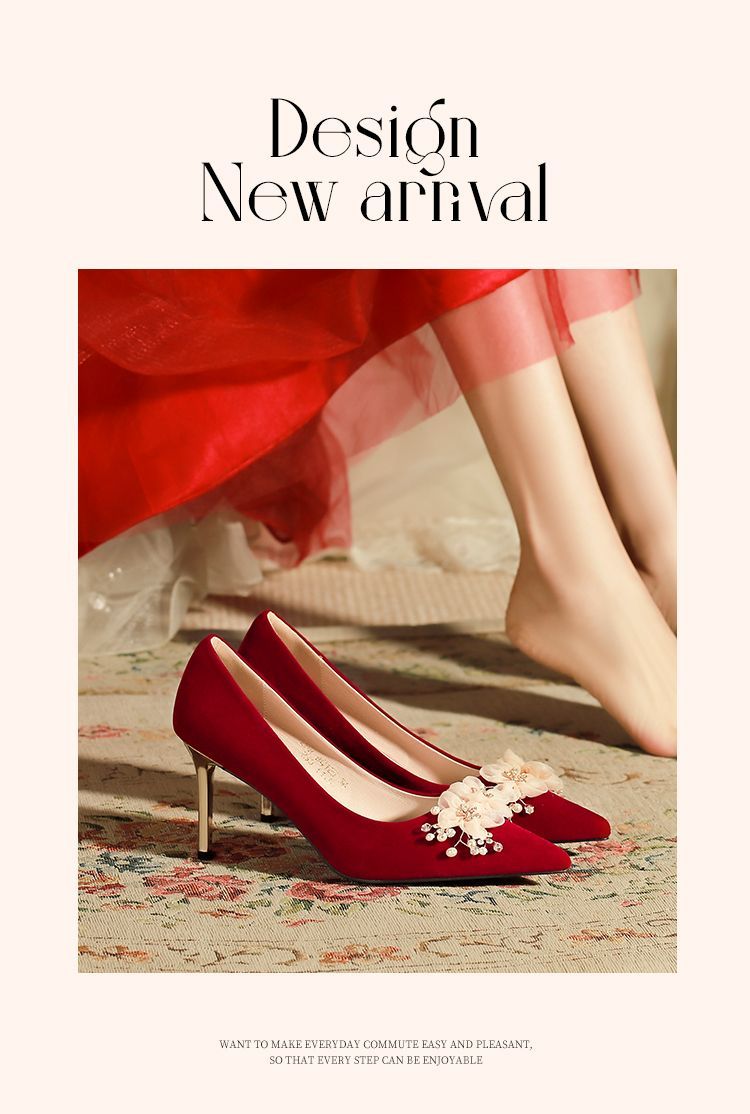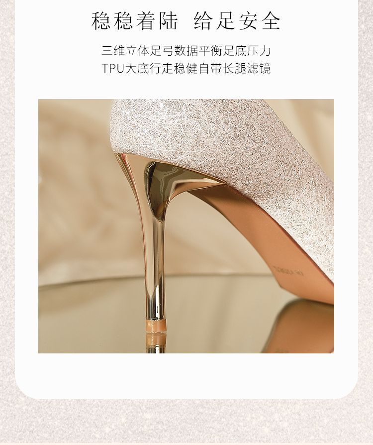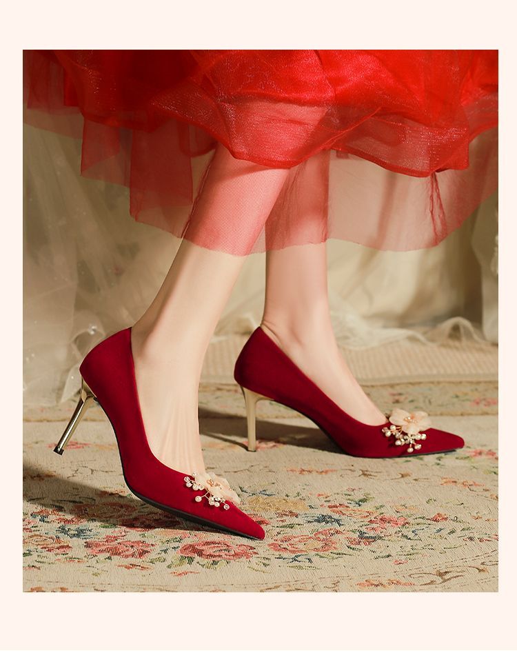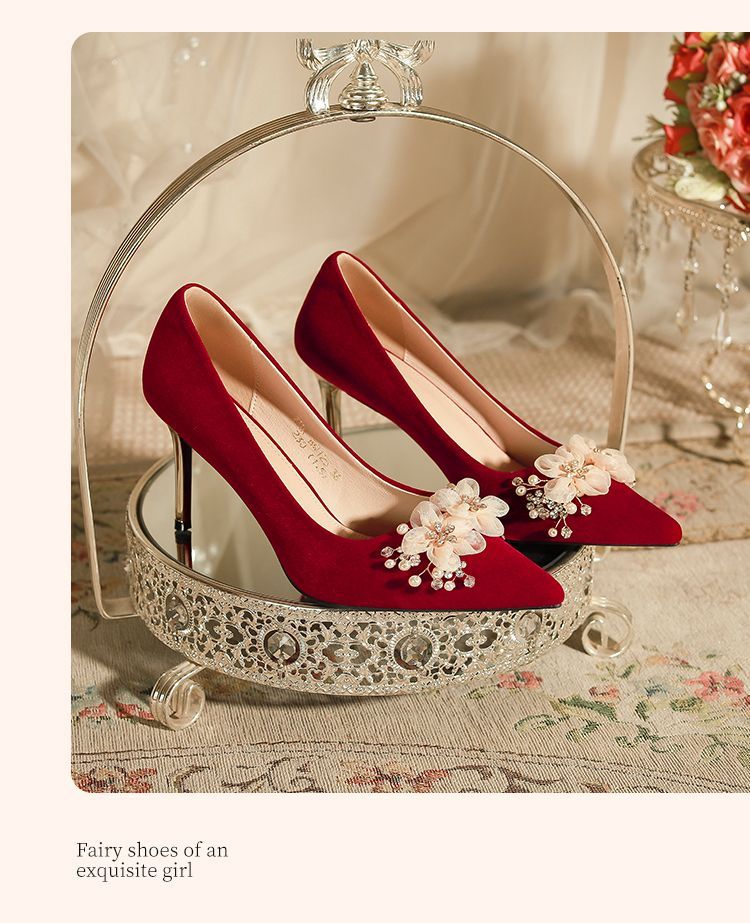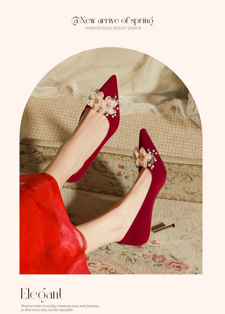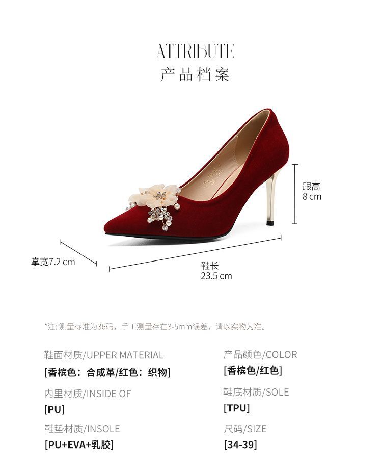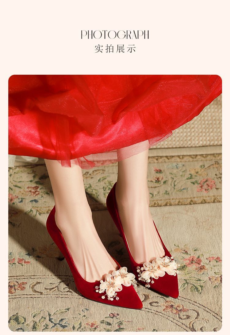 ZHR则则香槟色结婚婚鞋2025新款水晶鞋结婚新娘花朵新中式高跟鞋