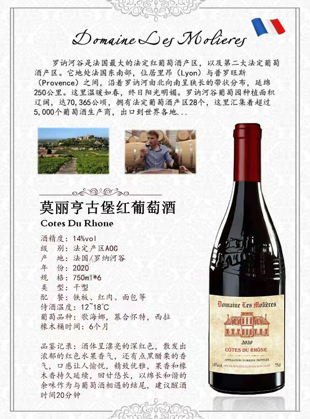 法国 莫丽亨 古堡红葡萄酒 2021年 750ml 14%vol单瓶装 (买一送一)-jmw