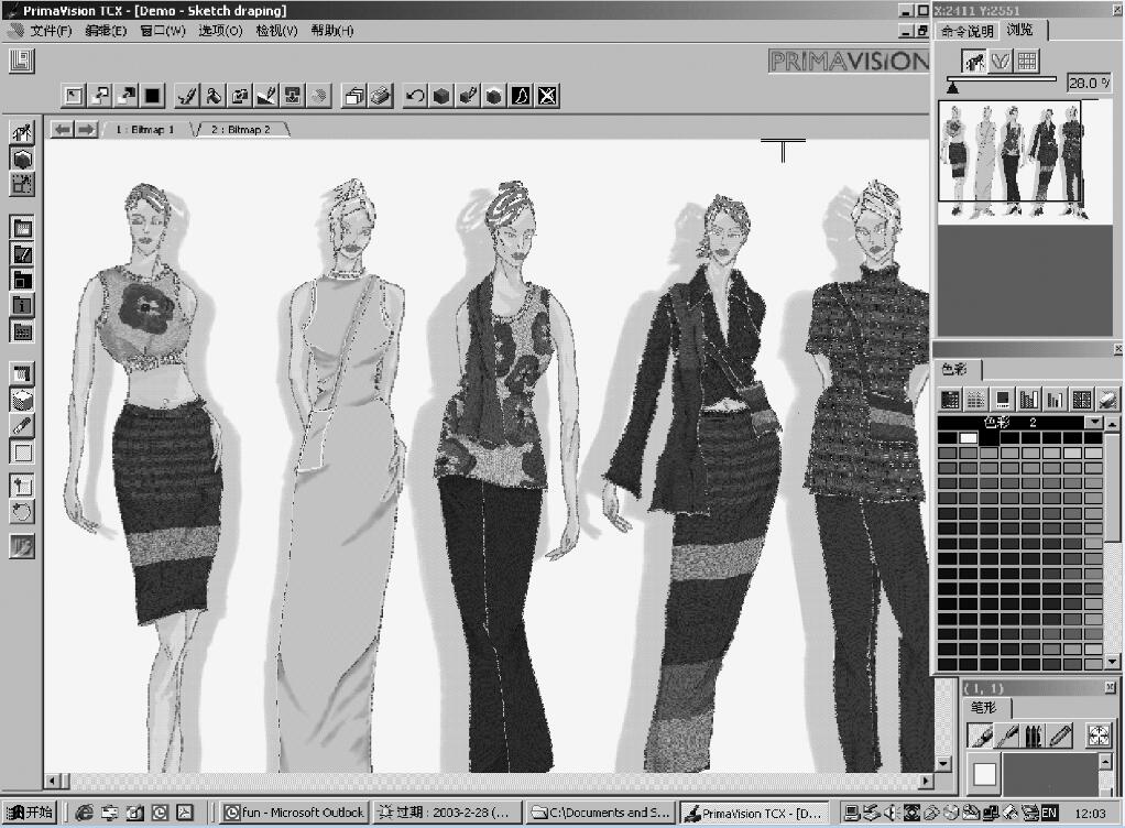章 服装CAD 概述……………………………………………………… 2节 服装CAD 的概念、作用及发展趋势……………………………… 2一、服装CAD 的发展历史/ 2二、服装CAD 的作用/ 2三、服装CAD 的发展趋势/ 4第二节 服装CAD 系统软件………………………………………………… 7一、服装款式CAD 系统/ 7二、服装工艺CAD 系统/ 8三、服装试衣CAD 系统和量身定做(MTM)CAD 系统/ 9四、服装生产技术与经营管理系统/ 第三节 服装CAD 系统硬件………………………………………………… 思考题 ……………………………………………………………………… 12第二章 日升服装款式设计系统 ……………………………………………14节 系统概述…………………………………………………………… 14一、运行环境/ 15二、文件格式与类型/ 15三、常用快捷键/ 16第二节 款式设计中心……………………………………………………… 16一、款式设计基本工具/ 16二、款式设计应用/ 25第三节 面料设计中心……………………………………………………… 28一、面料设计前的准备/ 28二、面料设计应用/ 28第四节 平面设计中心……………………………………………………… 36一、新建画板/ 36二、局部面料的更换/ 37三、位图的局部变形/ 38四、画笔/ 39思考题 ……………………………………………………………………… 40第三章 日升服装CAD 系统 …………………………………………………44节 系统概述…………………………………………………………… 44一、文件类型与格式/ 44二、选择要素的模式/ 45三、点的类型/ 45四、常用快捷键/ 46第二节 日升打板系统……………………………………………………… 46一、原型库的使用方法/ 47二、打板系统绘图工具/ 48三、纸样工具/ 55四、文字与记号工具/ 63五、检查工具/ 68六、画面显示工具/ 69七、纸样综合设计与应用/ 69第三节 日升推板系统……………………………………………………… 95一、推板工具介绍/ 96二、推板实例应用/ 1第四节 日升排料系统 …………………………………………………… 4一、操作界面/ 4二、菜单栏/ 5三、常用快捷键/ 113四、单色布排料/ 114五、图案布排料/ 114思考题……………………………………………………………………… 116第四章 力克服装CAD 系统 ……………………………………………… 120节 力克纸样设计系统 ……………………………………………… 120一、系统概述/ 121二、工具箱/ 123三、常用下拉菜单和基本操作/ 152四、数据的输出和导入/ 153五、文化式女装衣身原型纸样设计/ 156六、裙原型纸样设计/ 166七、综合纸样设计实例/ 168第二节 力克推板系统 …………………………………………………… 194一、建立尺码表/ 194二、读入尺码表/ 195三、放缩工具/ 196四、尺码系统、网状修改工具/ 202五、推板实例/ 211第三节 力克排料系统 …………………………………………………… 213一、建立成衣档案/ 214二、素色布排料/ 217三、智能排料/ 235四、图案布料的排料/ 236思考题……………………………………………………………………… 240参考文献…………………………………………………………………… 242