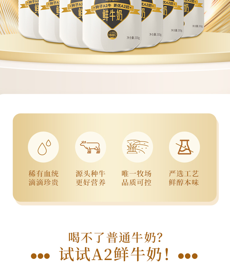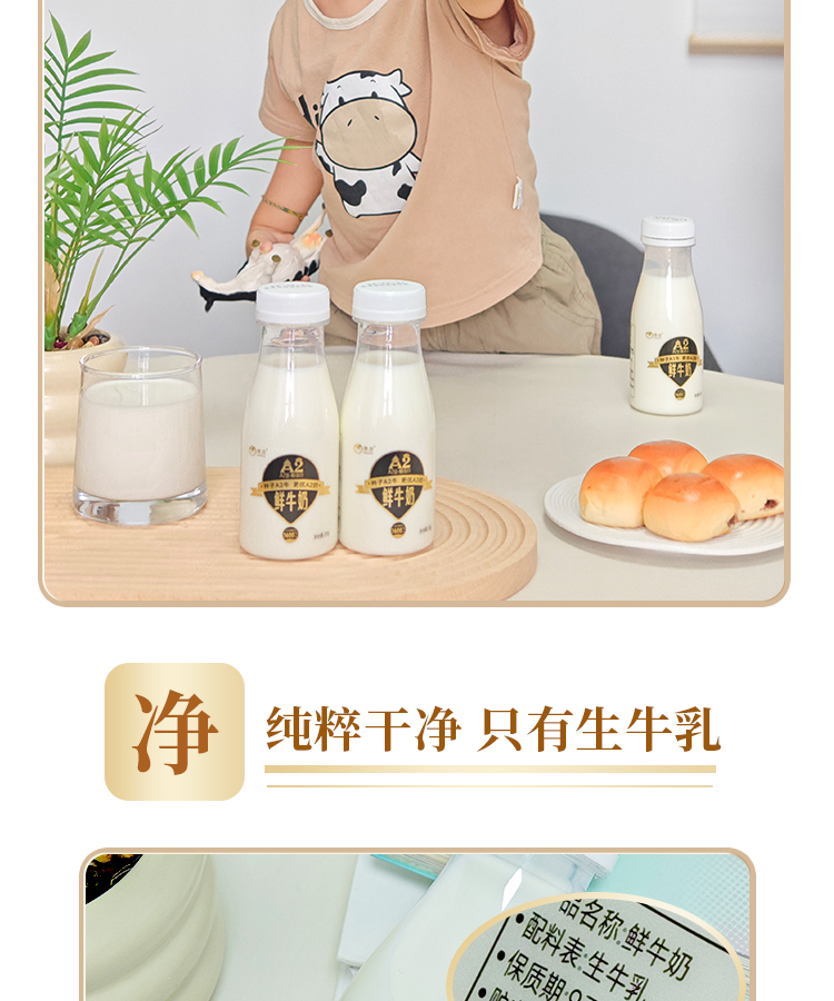 【企业】【每周一周二顺丰发货】奥芯A2β-酪蛋白巴氏鲜牛奶 亲亲礼200g*8瓶