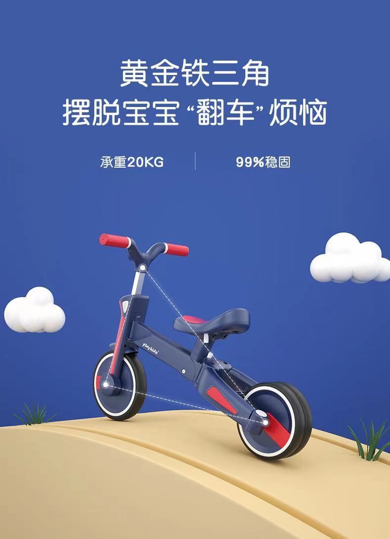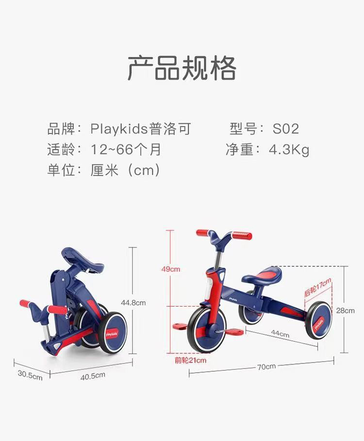 playkids普洛可S02 儿童折叠推杆三轮车BB平衡车脚踏车宝宝多功能4合1