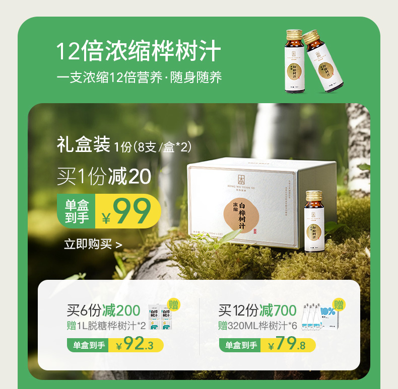 (礼盒装12份)【浓缩桦树汁】12倍浓缩 取汁天然 安全 0添加