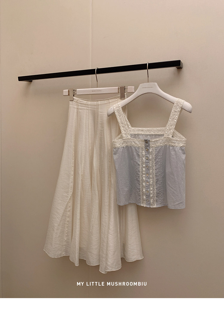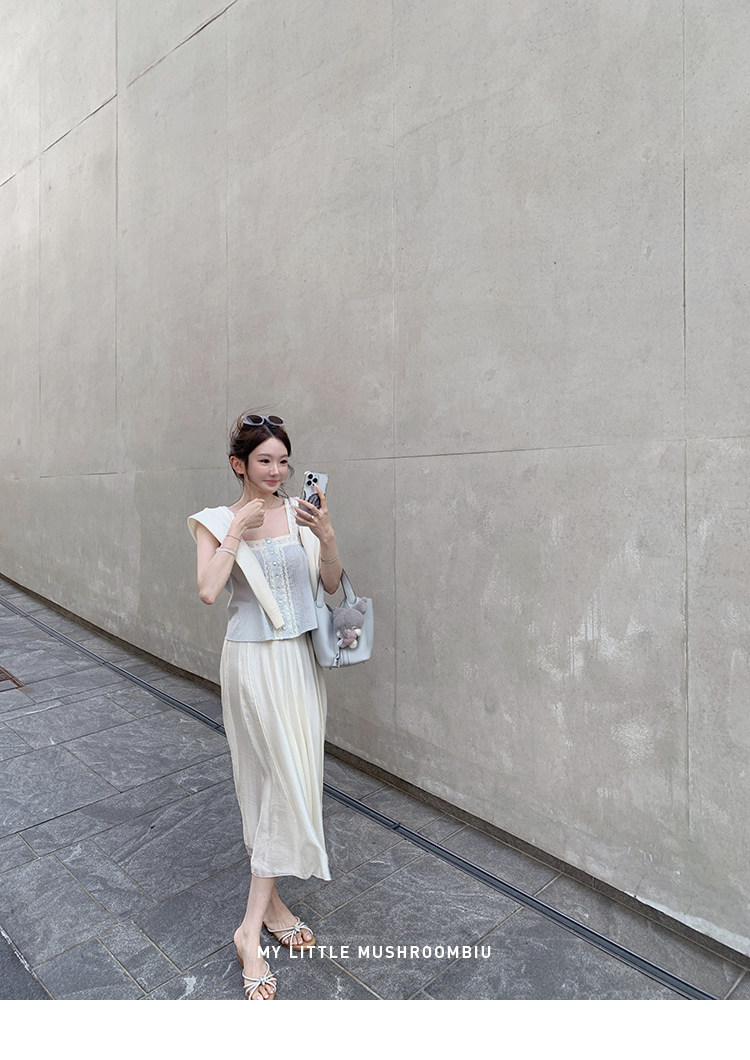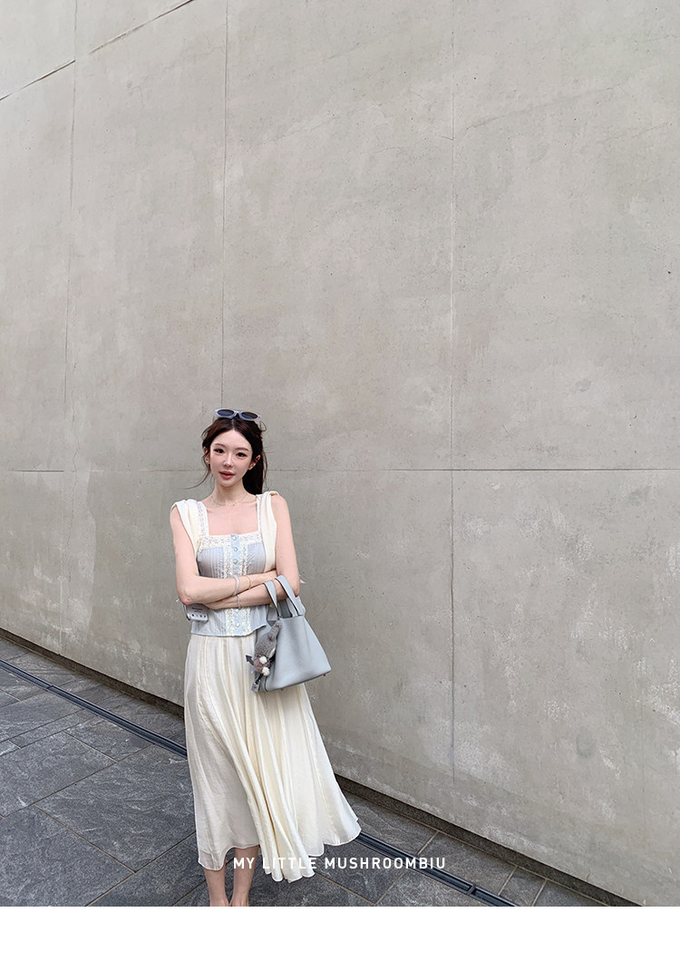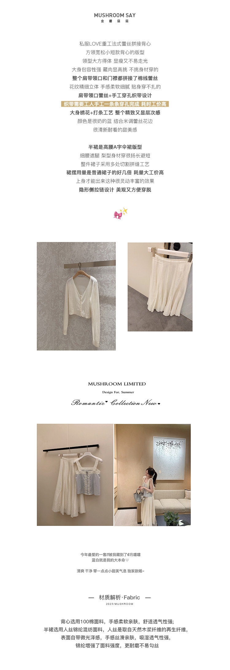 金蘑菇菇 夏日蓝白 / 重工蕾丝拼接背心+矜贵BC纱裙