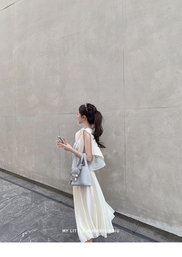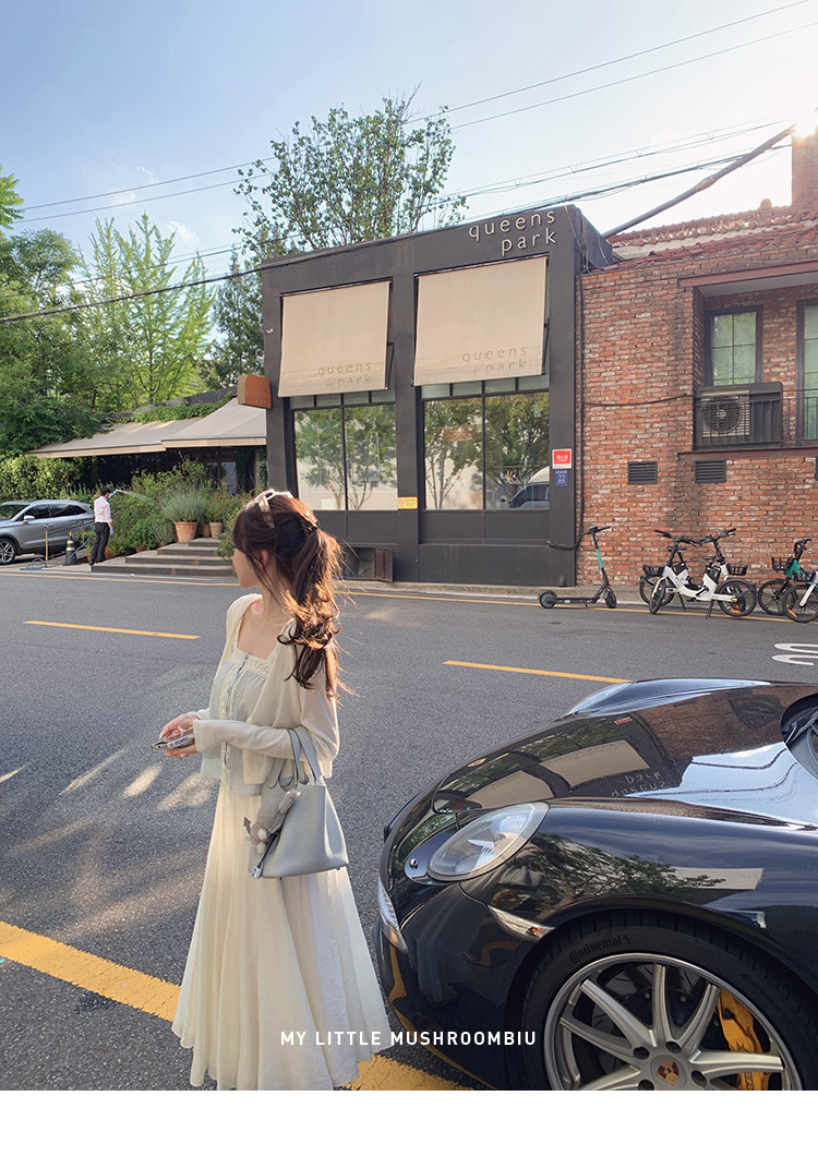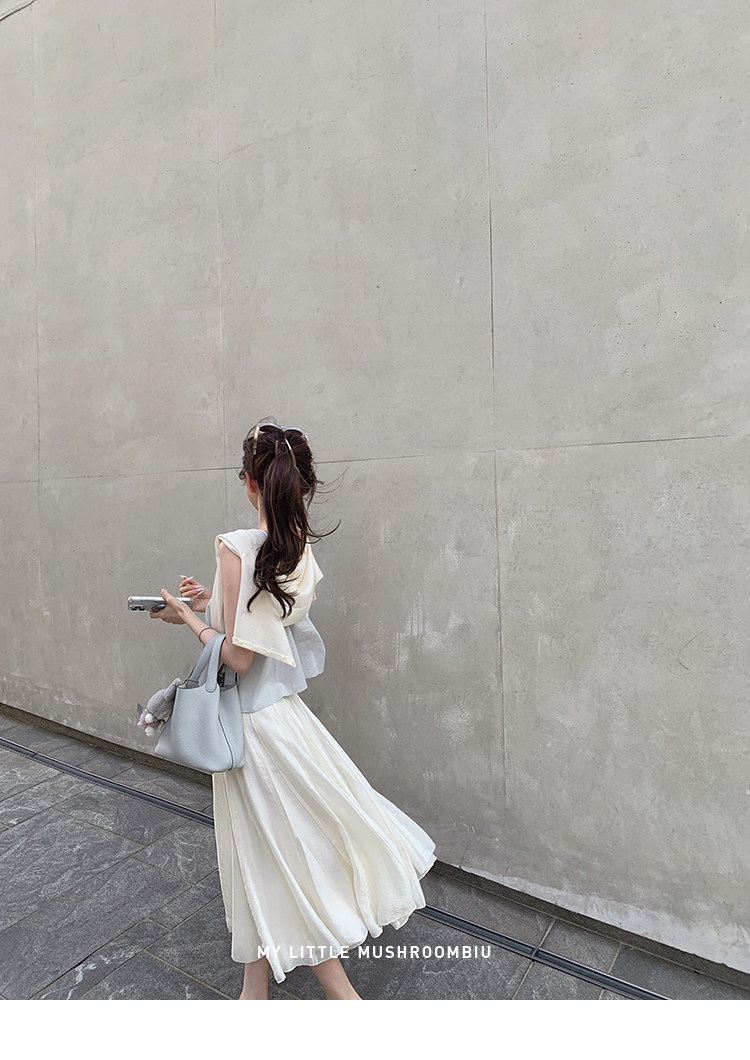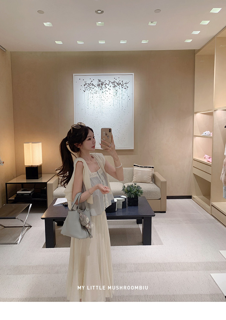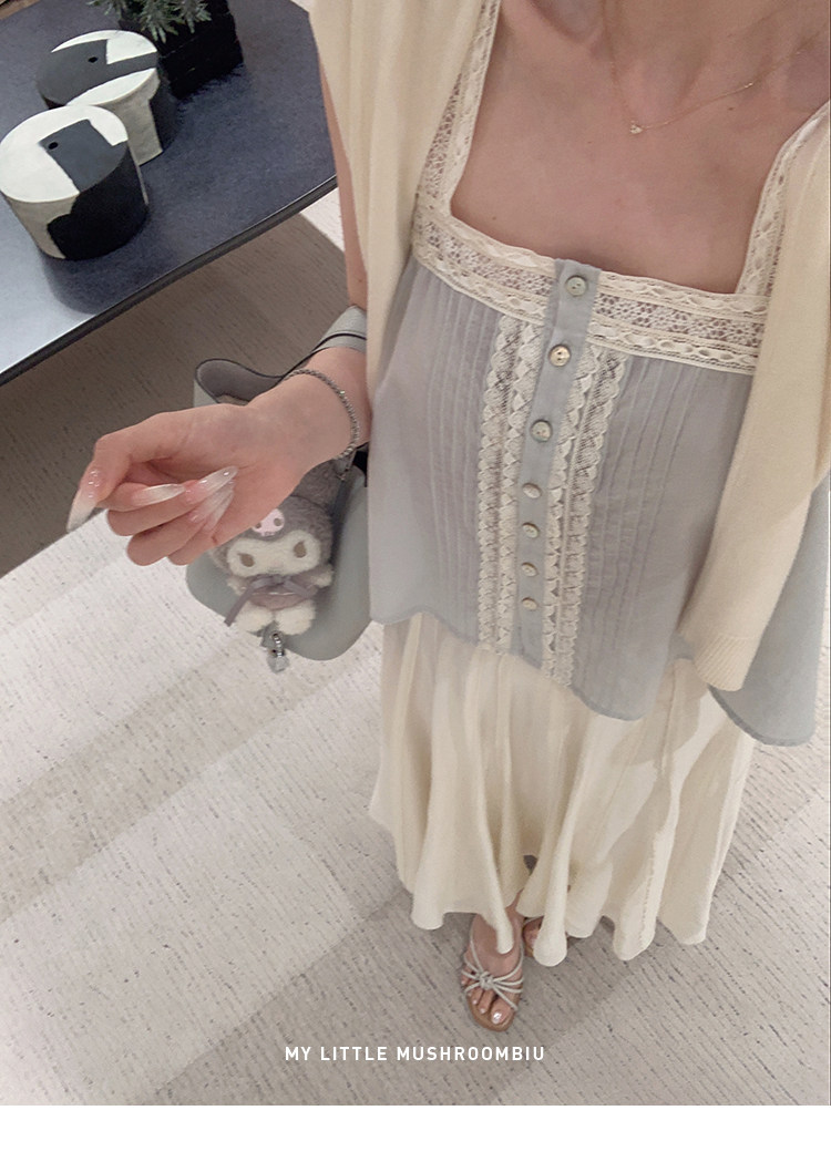 金蘑菇菇 夏日蓝白 / 重工蕾丝拼接背心+矜贵BC纱裙