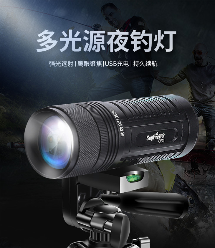 SUPERFIRE神火GF01钓鱼灯伸缩调焦强光远射超亮大功率氙气灯台钓可充电四光源夜钓灯