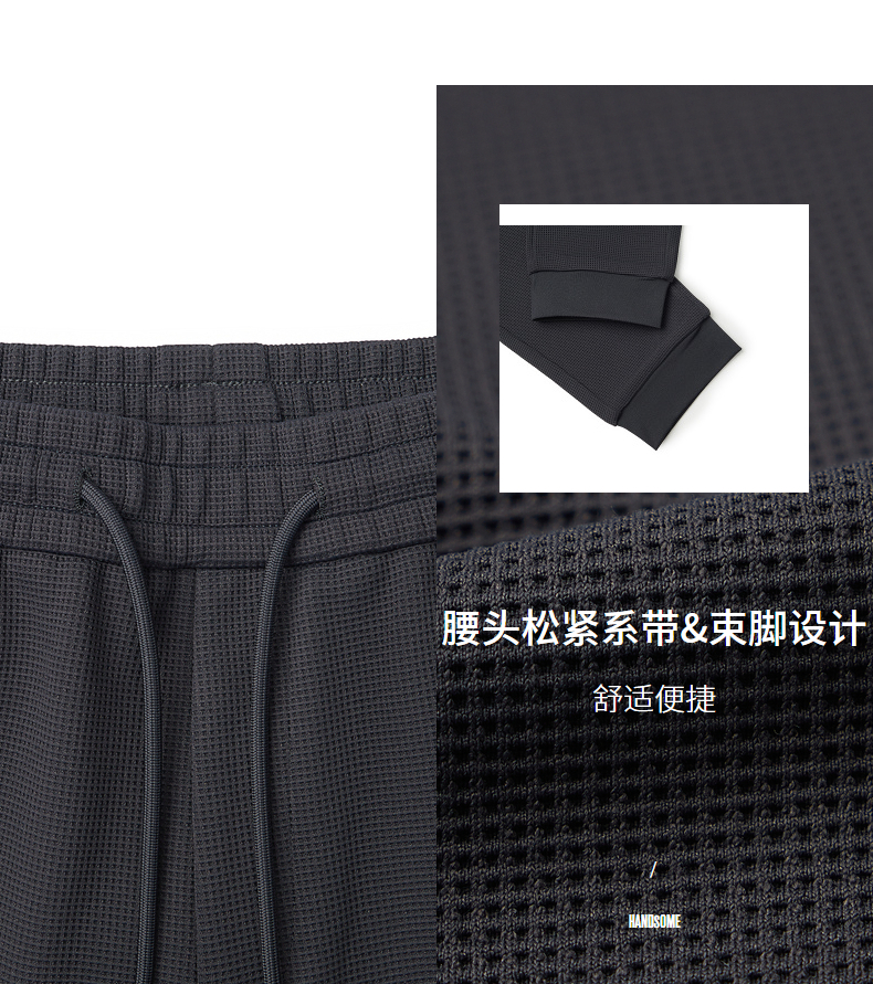 【华夫格】柒牌松紧休闲裤男秋冬厚款时尚潮流青年束脚长裤子 125H71510