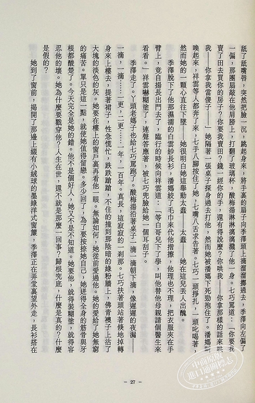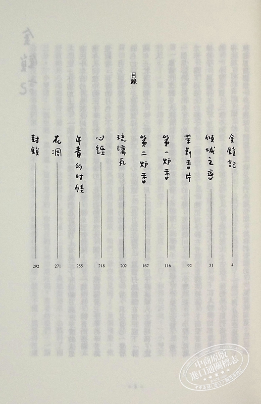 〈封鎖〉中的「慾望街車」超然時空之外,讓壓抑得以發洩;〈金鎖記〉透過可謂為監禁的滯悶空間,將人性赤裸一表無遺;〈茉莉香片〉令人迷失於奇異且幾近扭曲的「遊戲」;〈花凋〉則寫盡毫無情愫的婚姻與被命運拋棄的抑鬱……這些深蘊人心的隱喻、傳統與叛逆的透視,經歷80年的淬鍊打磨,依舊令人心醉神迷。