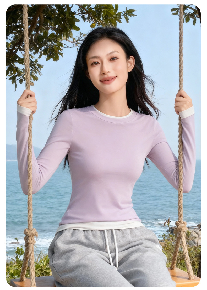 【假两件打底衫】新款春秋内搭 美肤可外穿薄款 修身内衣长袖上衣  商品图4