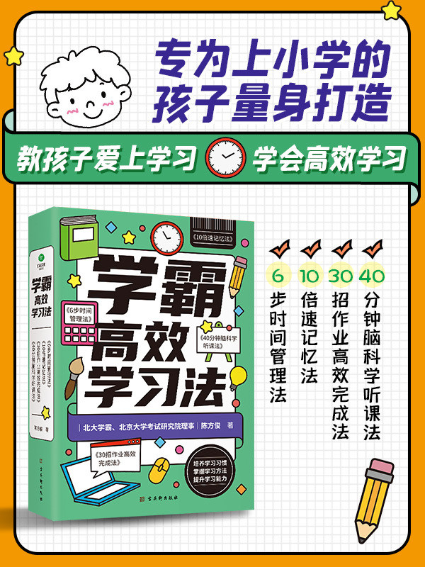 再多的就不再说啦,家里有小孩还在学习阶段的亦或是当家长的,都请来了解(备入)这套🏆北大学霸、北京大学考试研究院理事陈方俊著作的📚《学霸高效学习法》全4册 🌈一书带你告别孩子不会学,家长不知如何教的窘况!