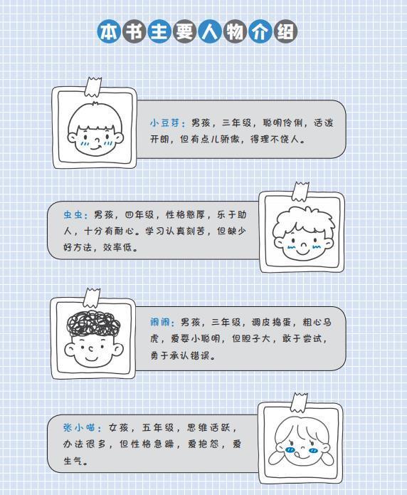 📕本套书专为上小学的孩子量身打造,教孩子爱上学习,学会高效学习! 👍家长也可以阅读,学会将书中所讲内容转变成指导技巧,从而更好的提高孩子的学习成绩和做事效率! 故事的开始先来认识这几位小主角哦👇