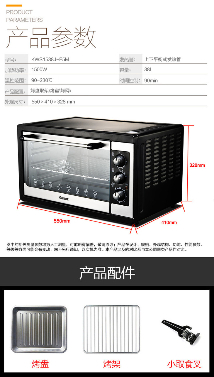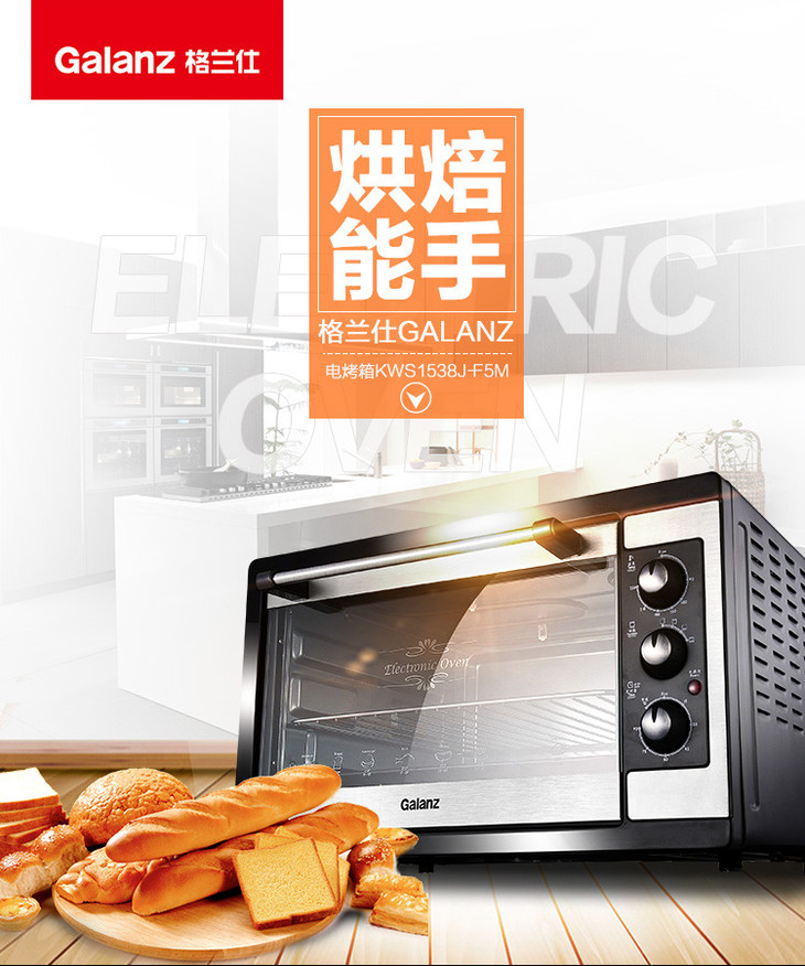 格兰仕(Galanz)家用多功能38升大烤箱 独立控温 三层烤位 KWS1538J-F5M