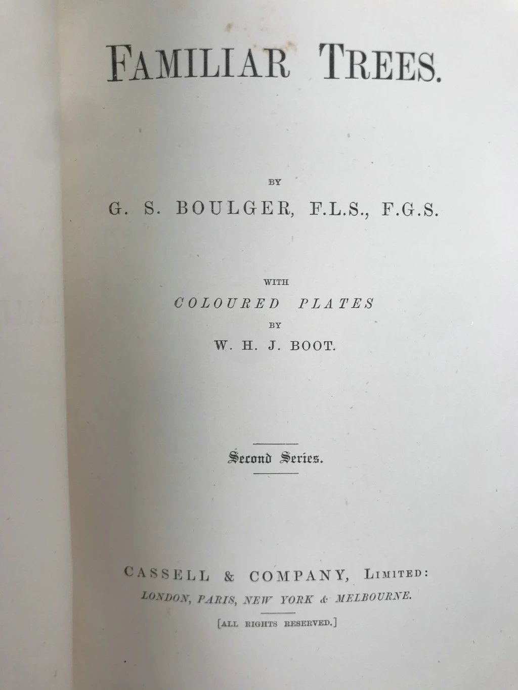 含藏书票!札尼斯朵夫工坊特装本!约1900年左右 常见树木图集(全2卷) 数十幅彩色版画插图 漆布精装32开