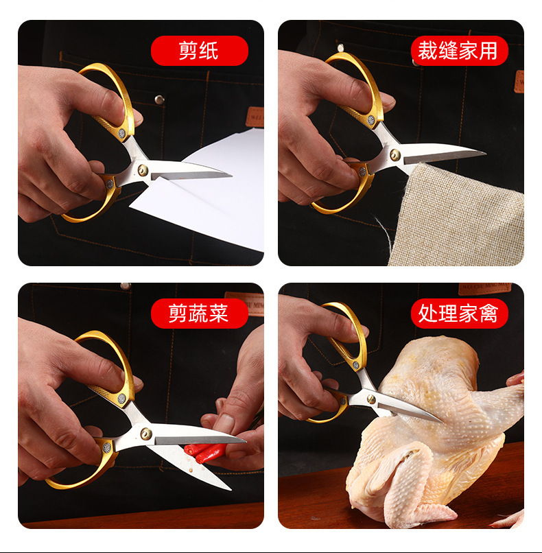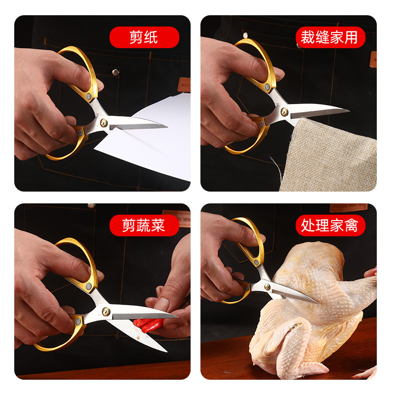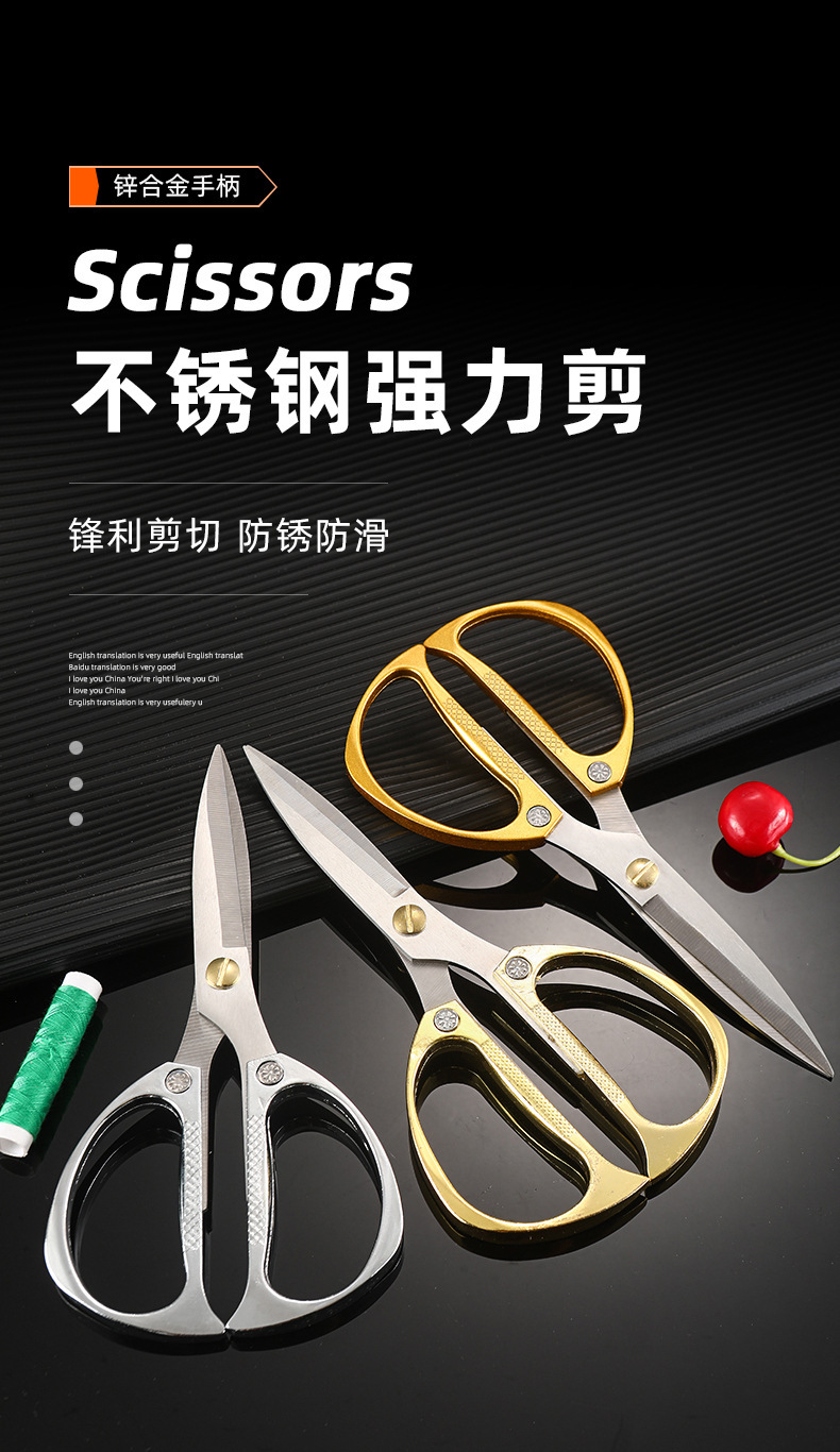 【不锈钢强力剪、锌合金手柄防滑】金钢剪不锈钢剪刀家用合金强力厨房鸡骨剪专用大剪刀剪布小剪刀.TA