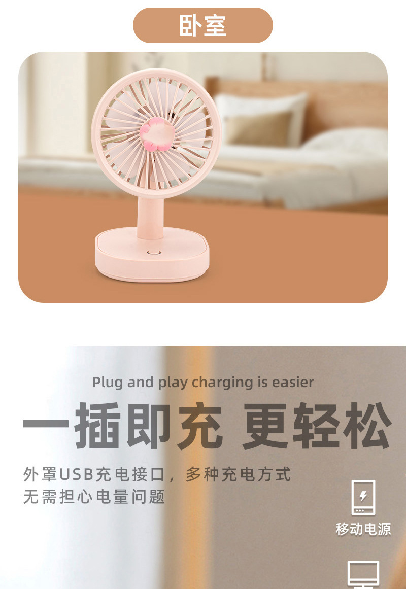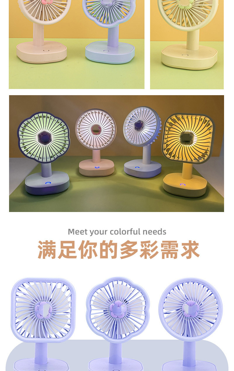 【可放在家站立吹风!也可携带出门】台式风扇音大风力夜灯学生宿舍手持usb充电小风扇玩具。ry