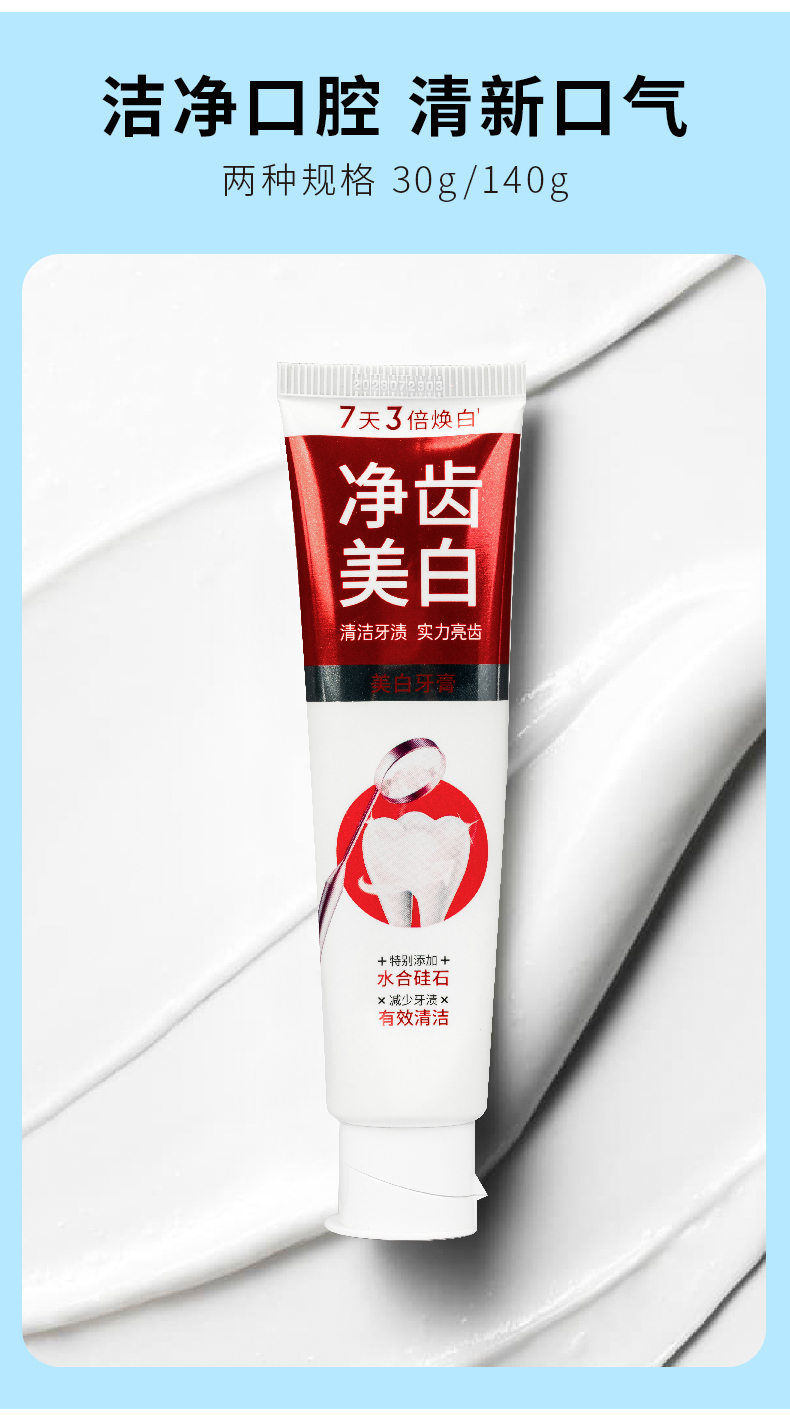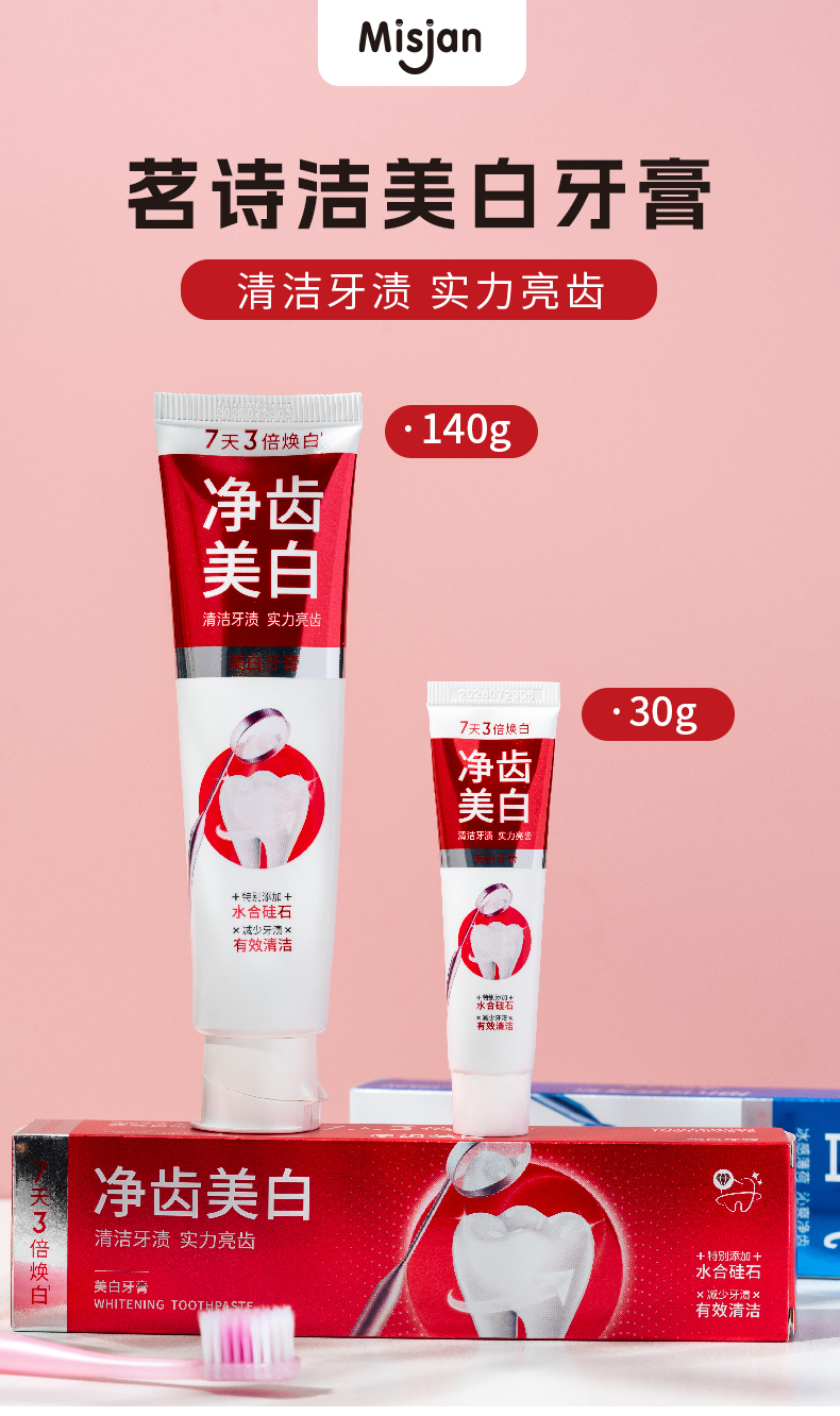 茗诗洁美白牙膏140g-30g(250541-250542)