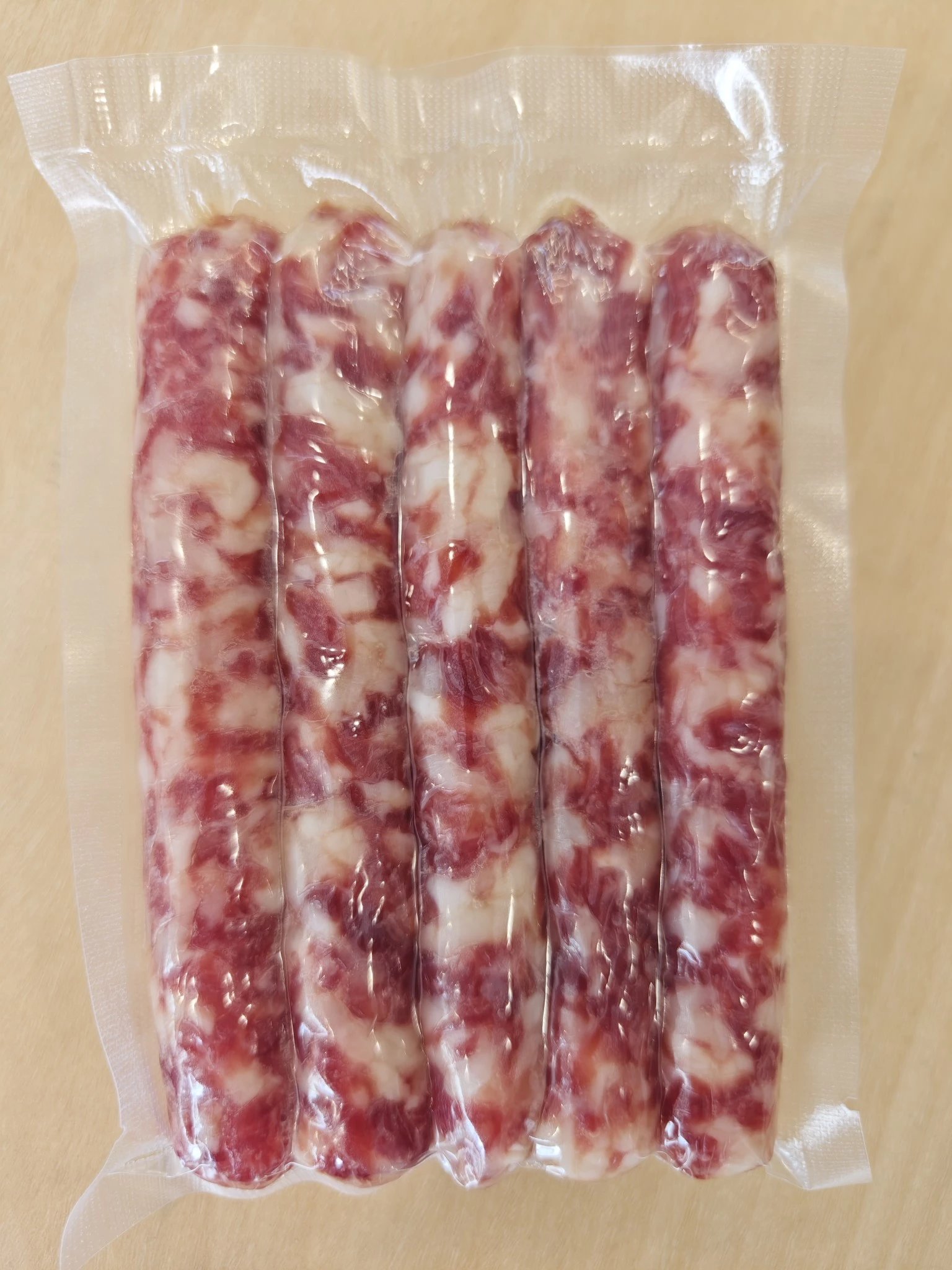 收到香肠打开包装,就闻到浓浓的肉香味,迫不及待切一根煎来尝尝,肉质紧实、不肥不腻,微甜带浓浓的肉香,是理想中的味道