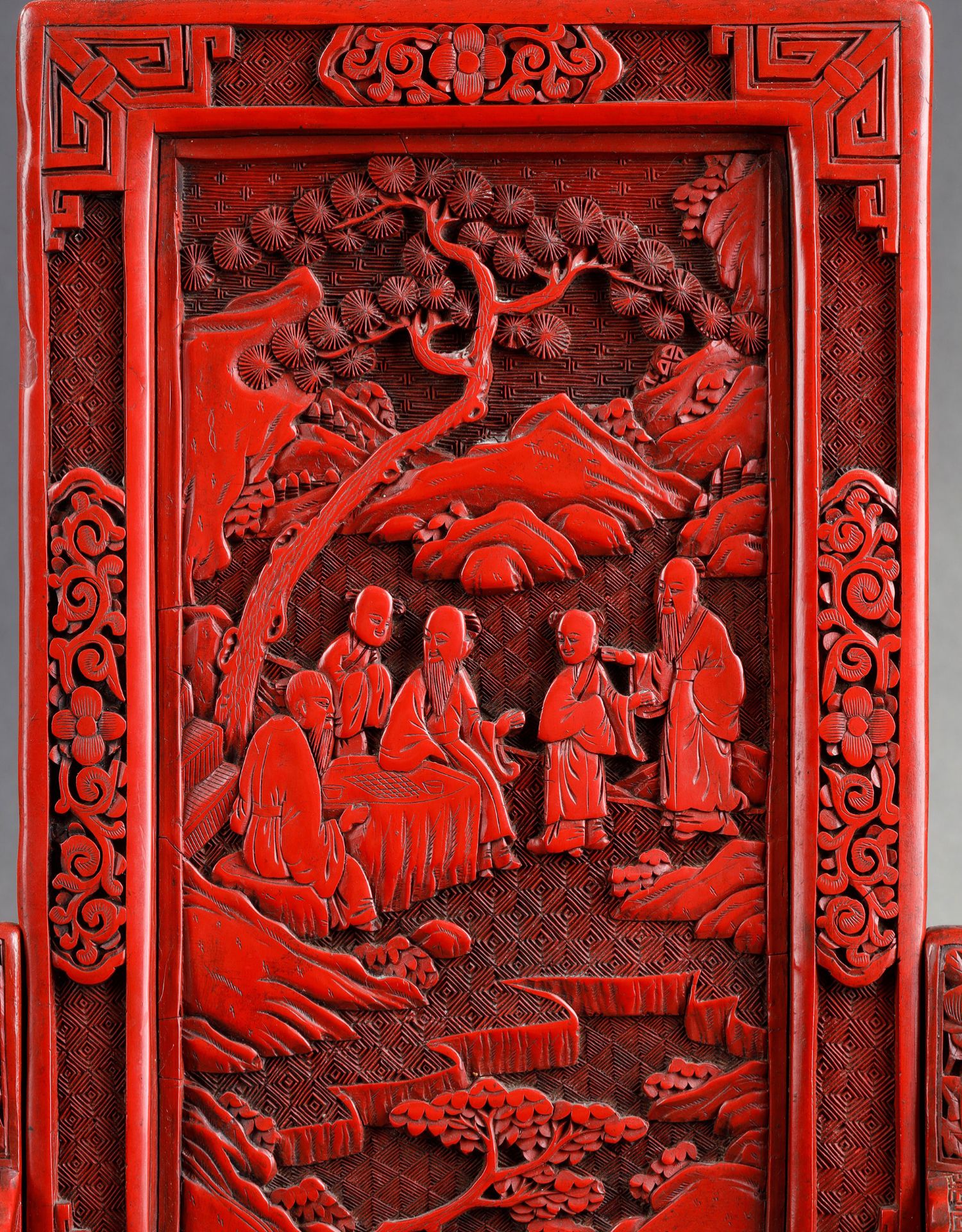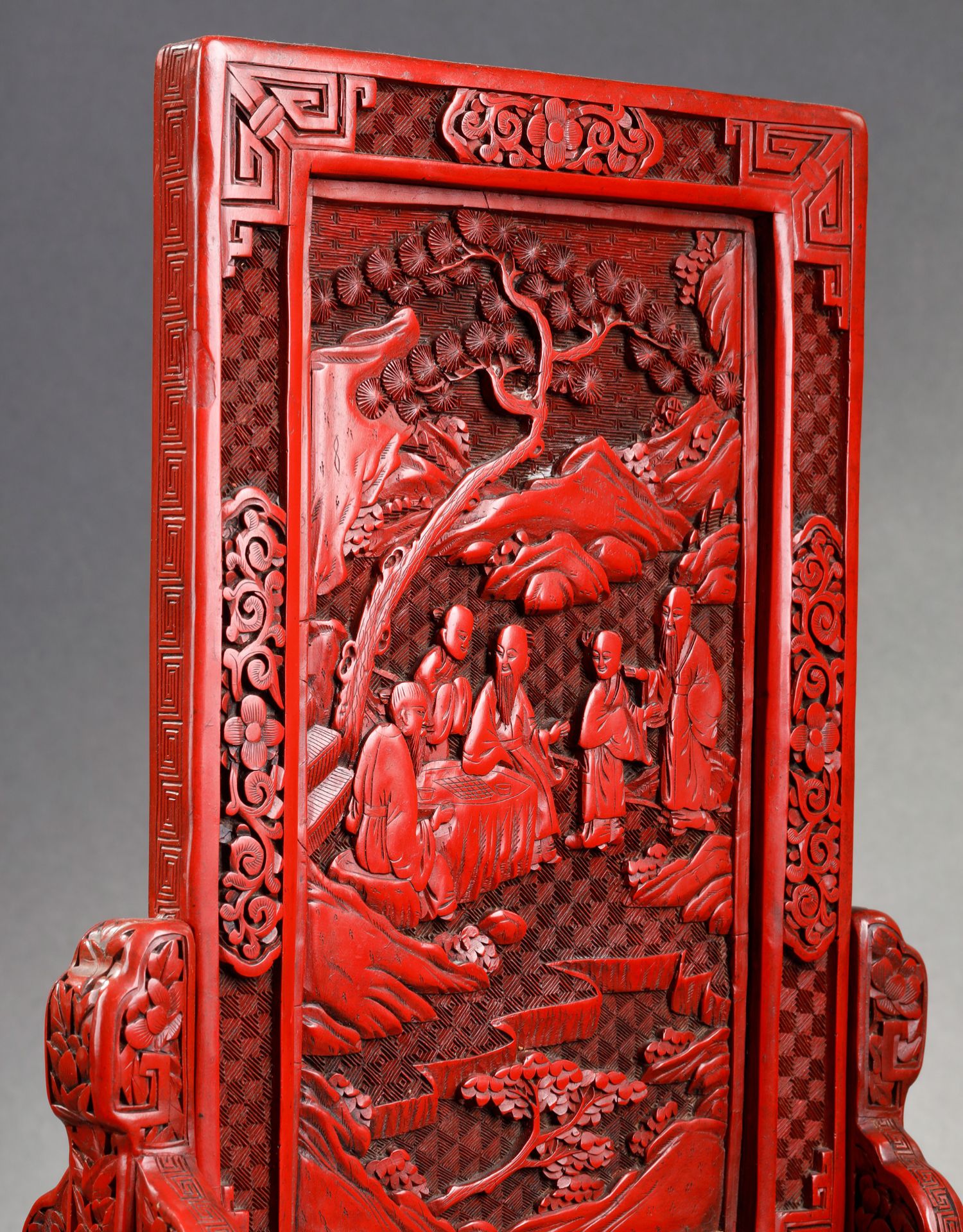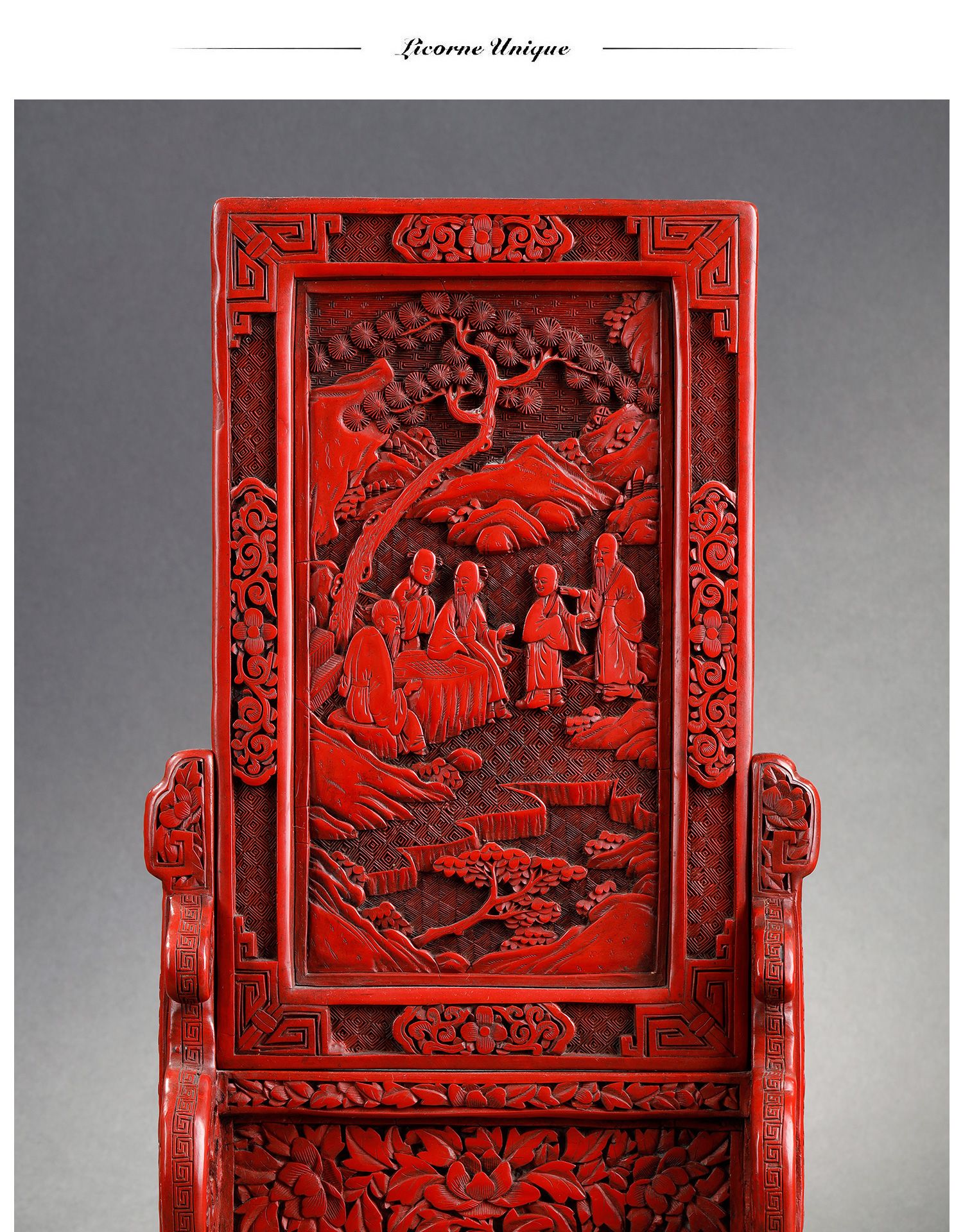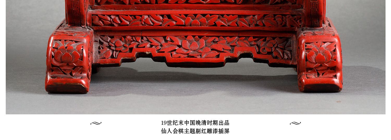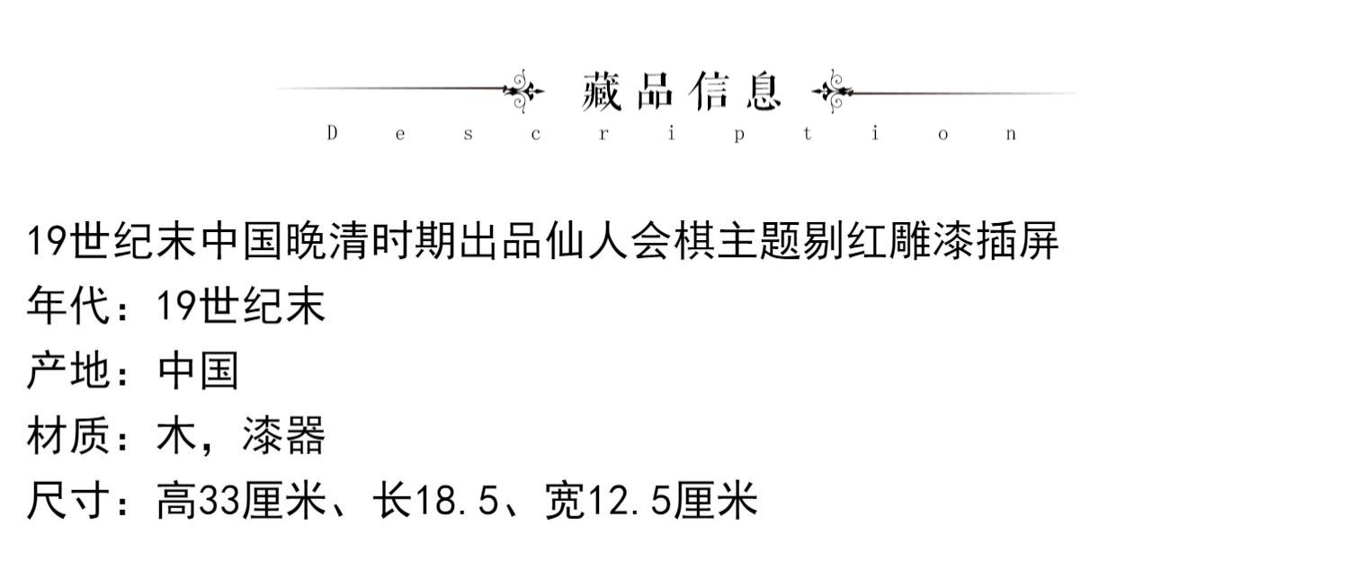 独角鹿西洋古董摆件中国晚清时期仙人会棋主题剔红雕漆插屏屏风
