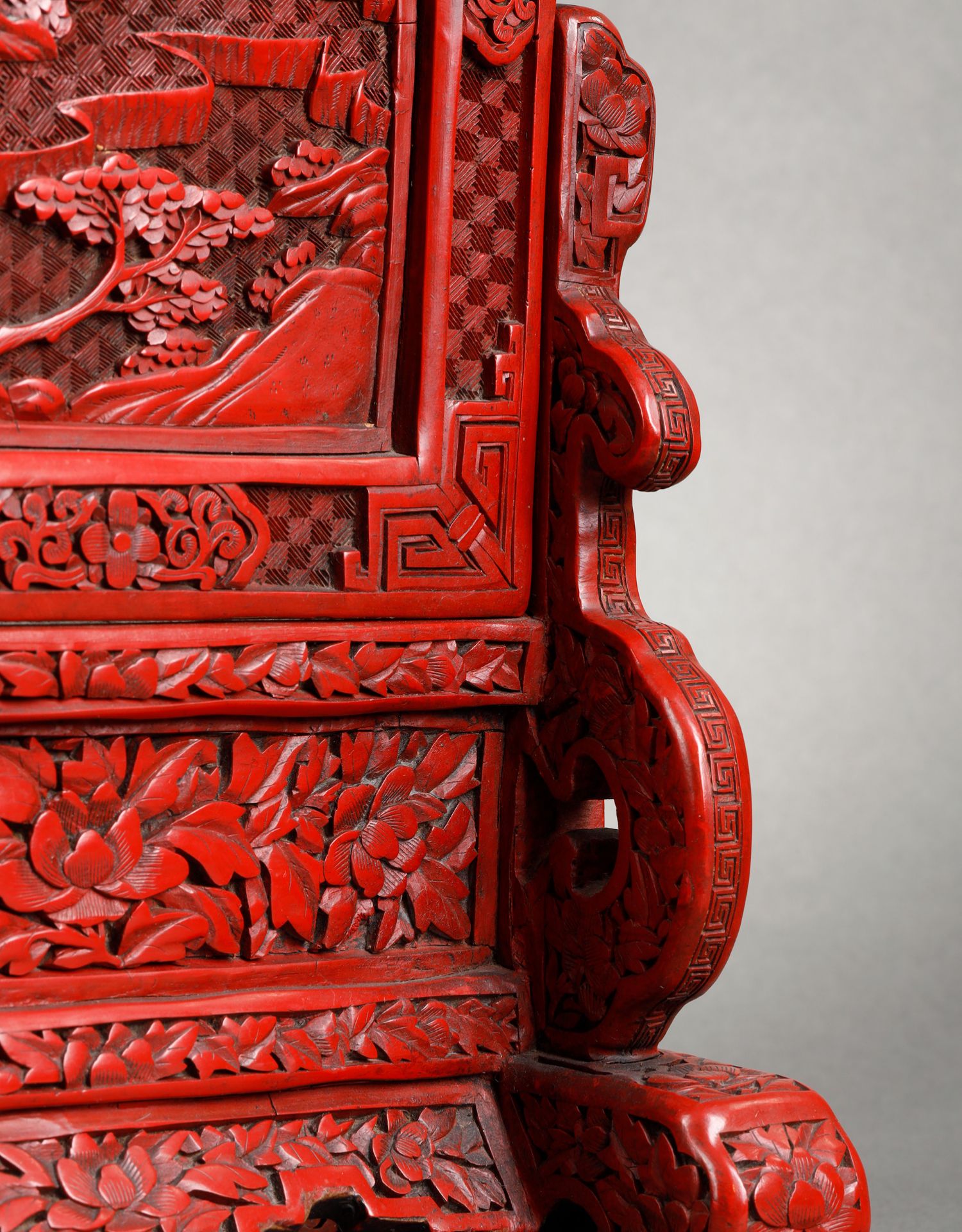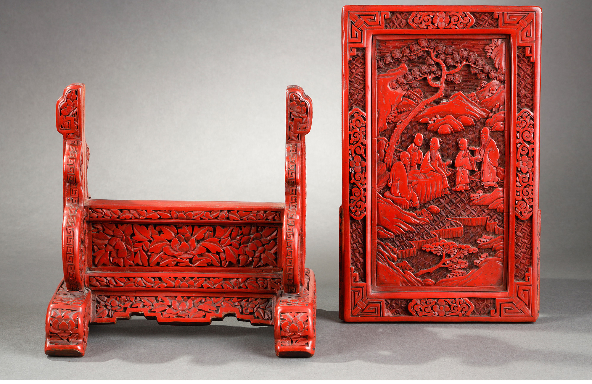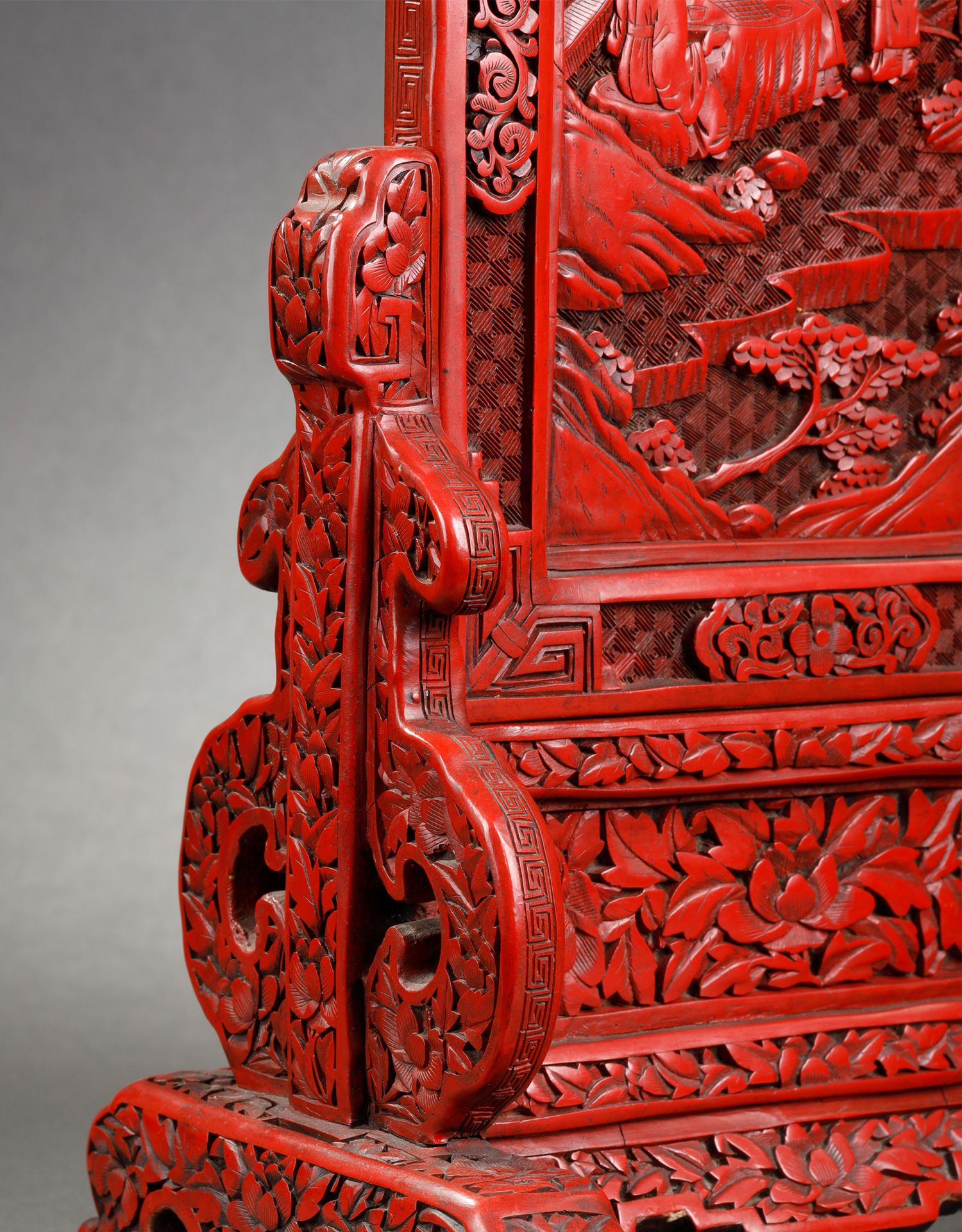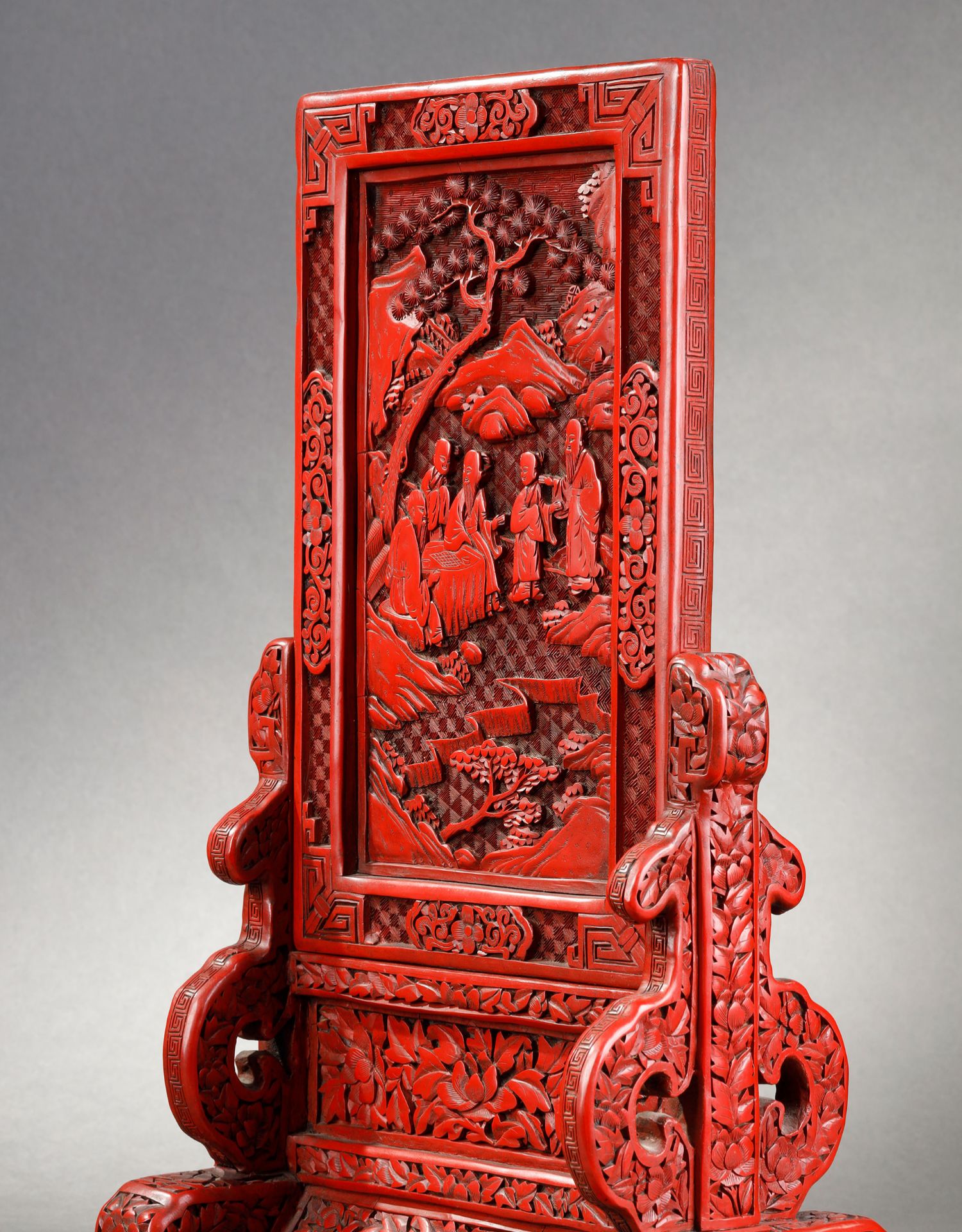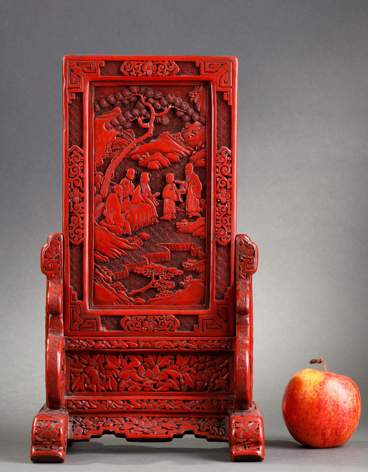 独角鹿西洋古董摆件中国晚清时期仙人会棋主题剔红雕漆插屏屏风