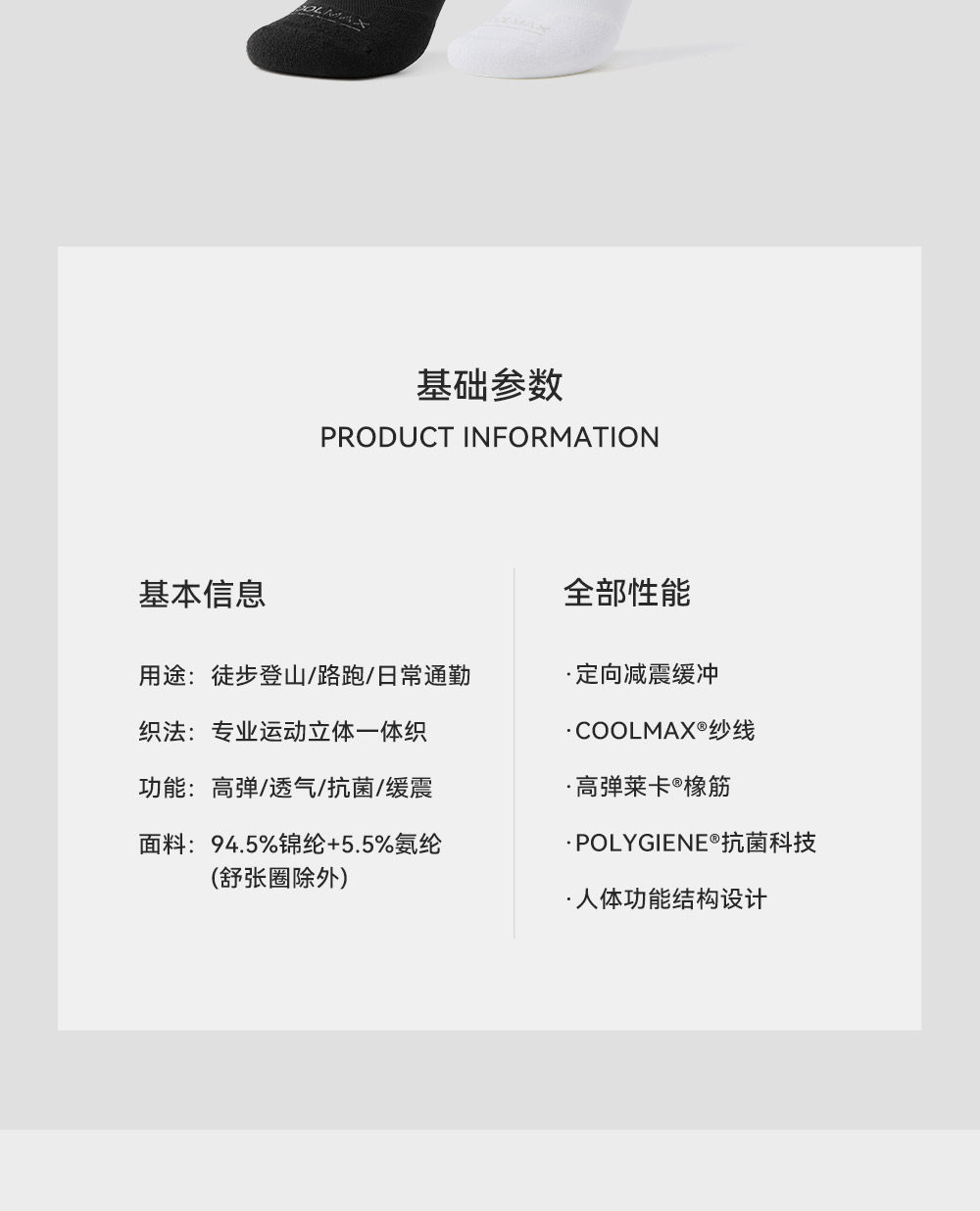 伯希和户外运动袜男士登山缓震徒步减压专业跑步抗菌速干短筒袜子