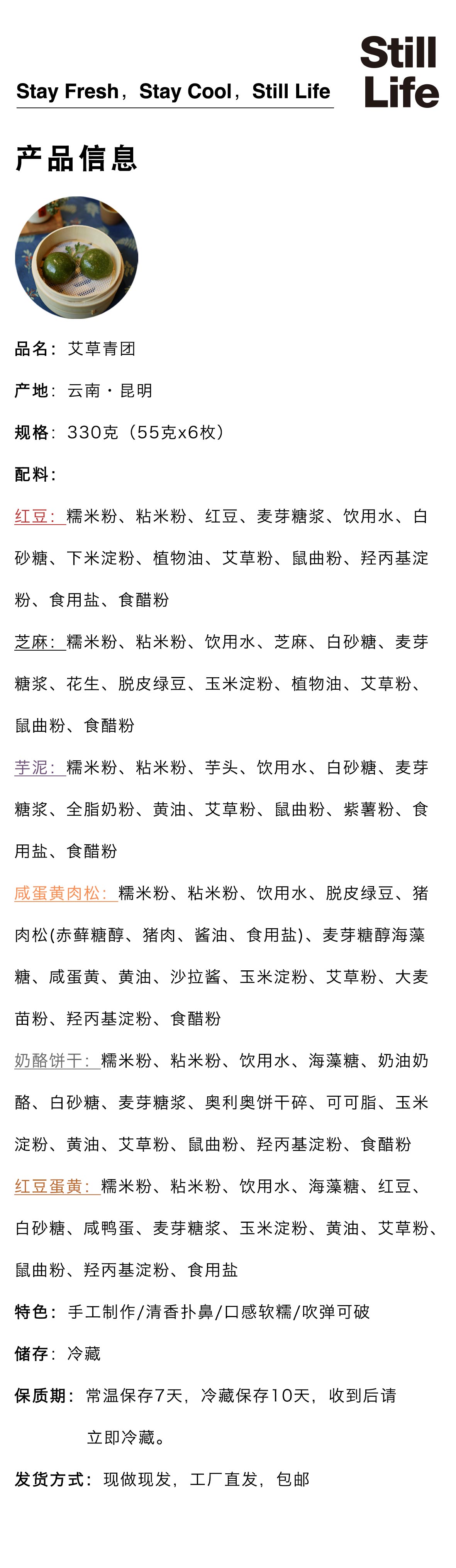 翠碧如玉艾草多口味青团 (55g✖️6块)顺丰空运包邮【Y】