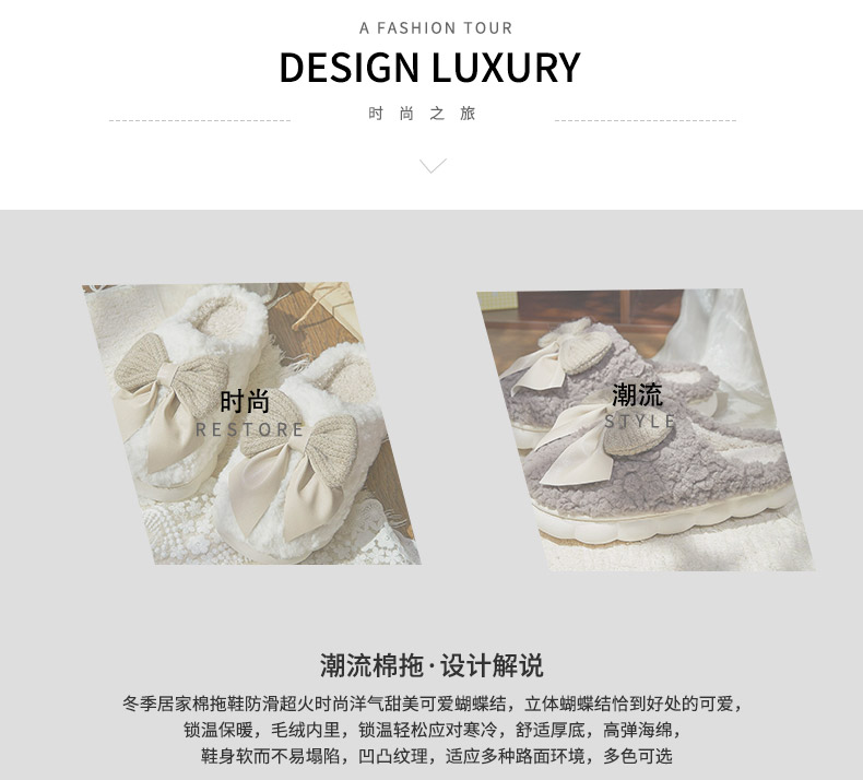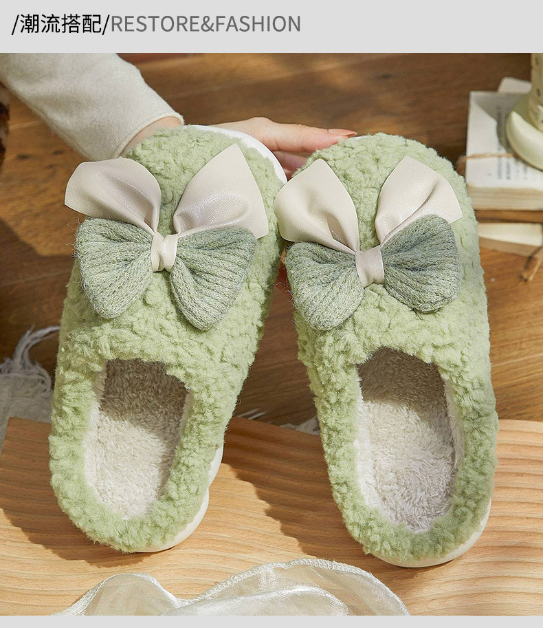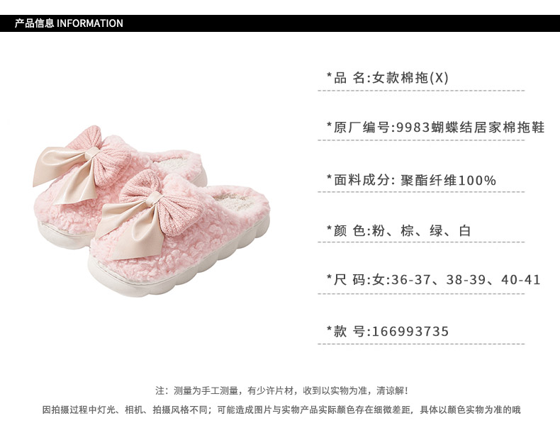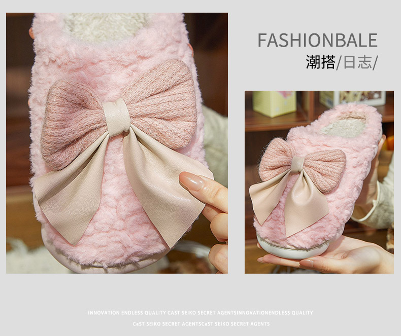 时尚甜美可爱防滑保暖蝴蝶结居家棉女士拖鞋-纪念日百货门店同款166993735