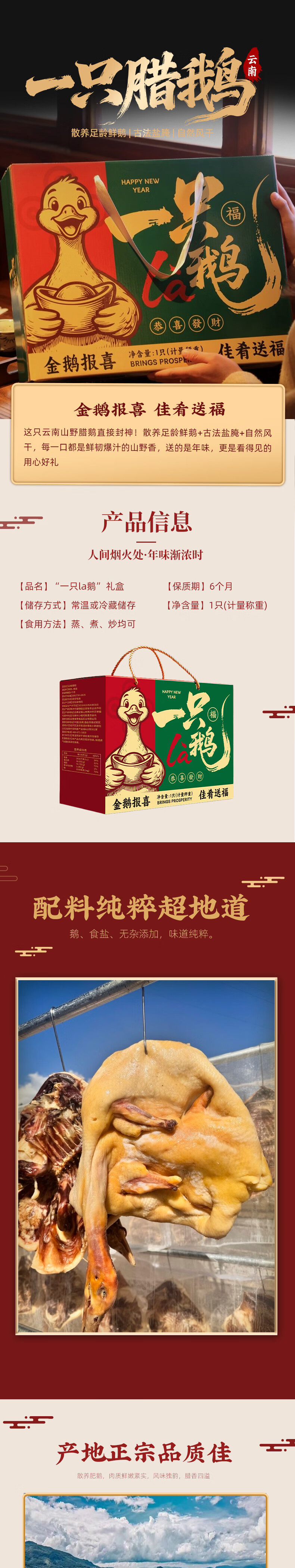 云南特产滇味一只腊鹅腌制风干腊香咸香云南特色产地直发过年送礼礼盒装伴手礼