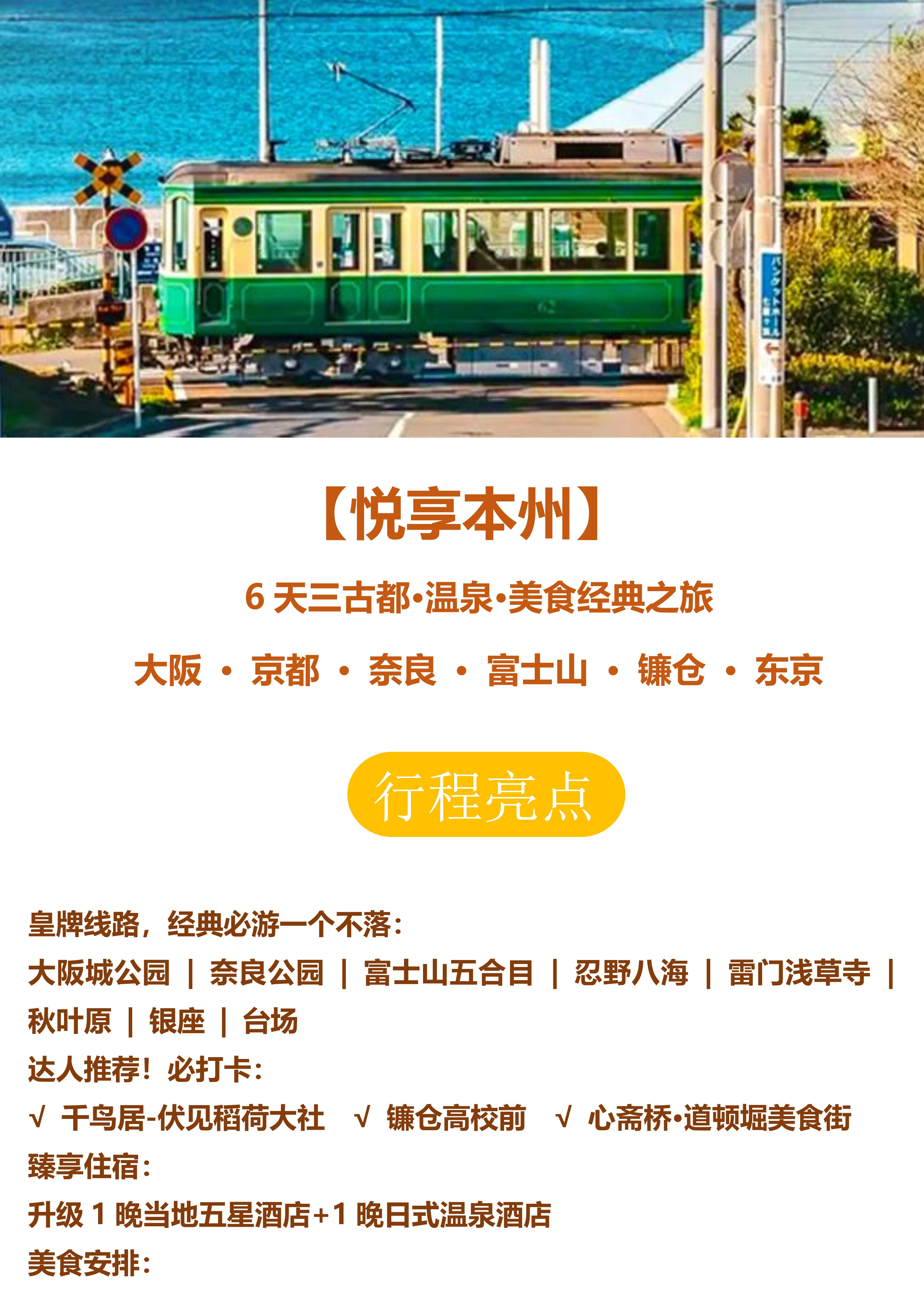 【悦享本州】6天三古都·温泉·美食经典之旅