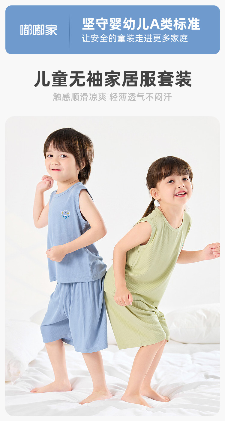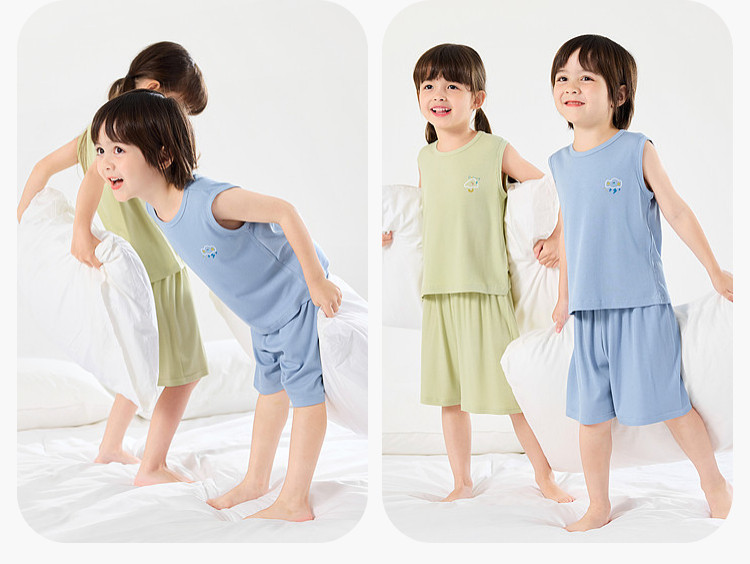 嘟嘟家儿童睡衣套装夏季男童纯棉家居服夏装宝宝空调服女童衣服潮F6BJJ024
