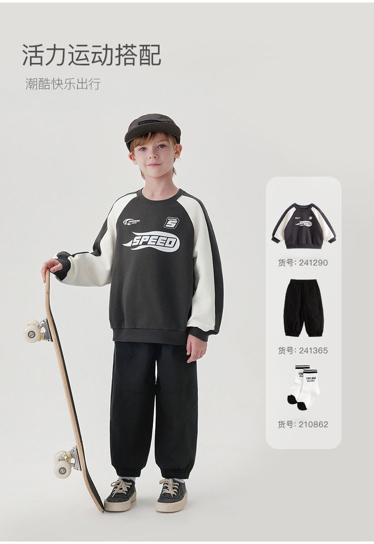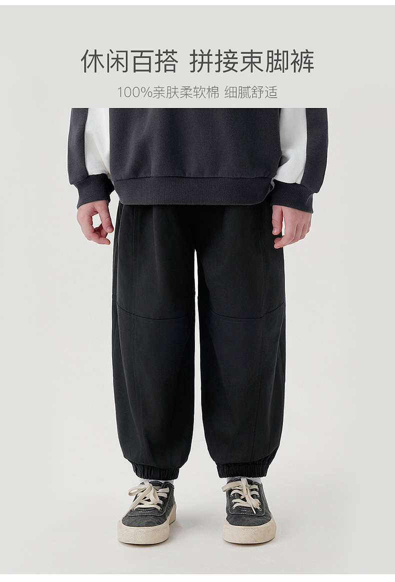 马克珍妮男女童休闲百搭拼接运动裤儿童裤子束脚裤秋装新款241365