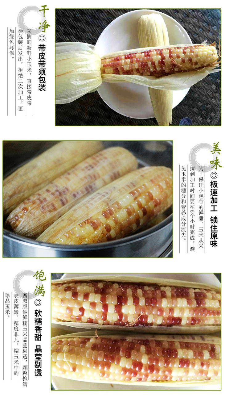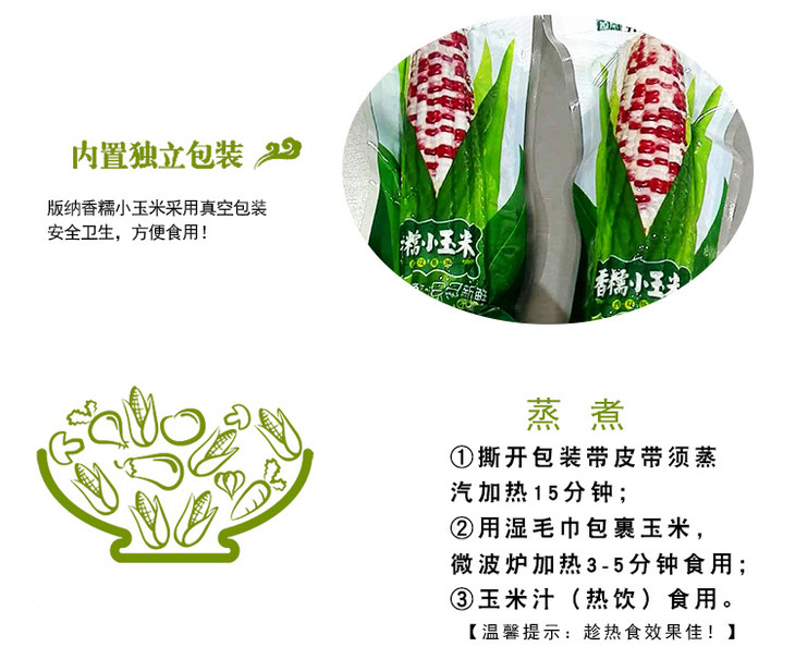 2、小玉米是真空包装熟玉米,保质期6个月,重量以实际称重为准,4斤约9-13根(小玉米包装袋上统一写160g,仅做参考,因为每根玉米重量不一样,请须知)