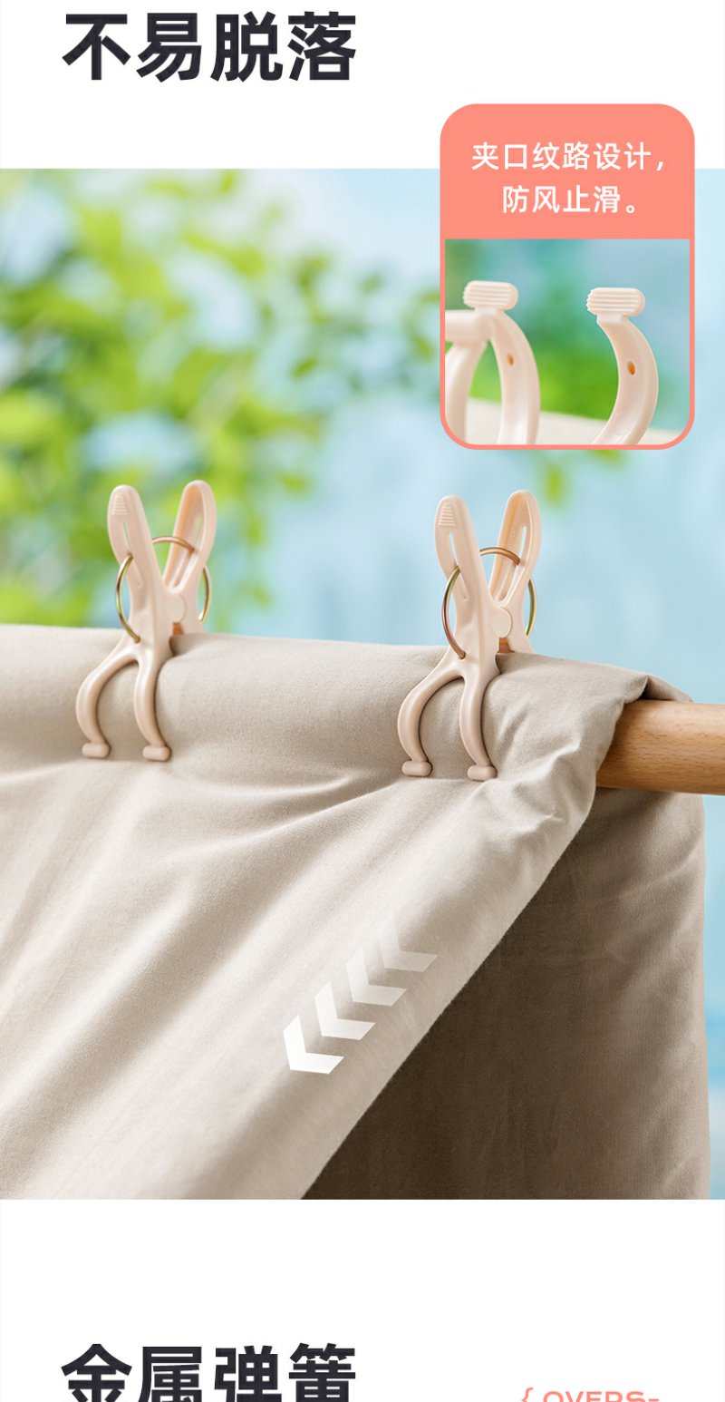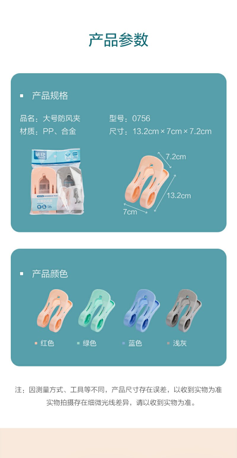 【茶花】大号防风被夹锯齿牢固塑料夹子