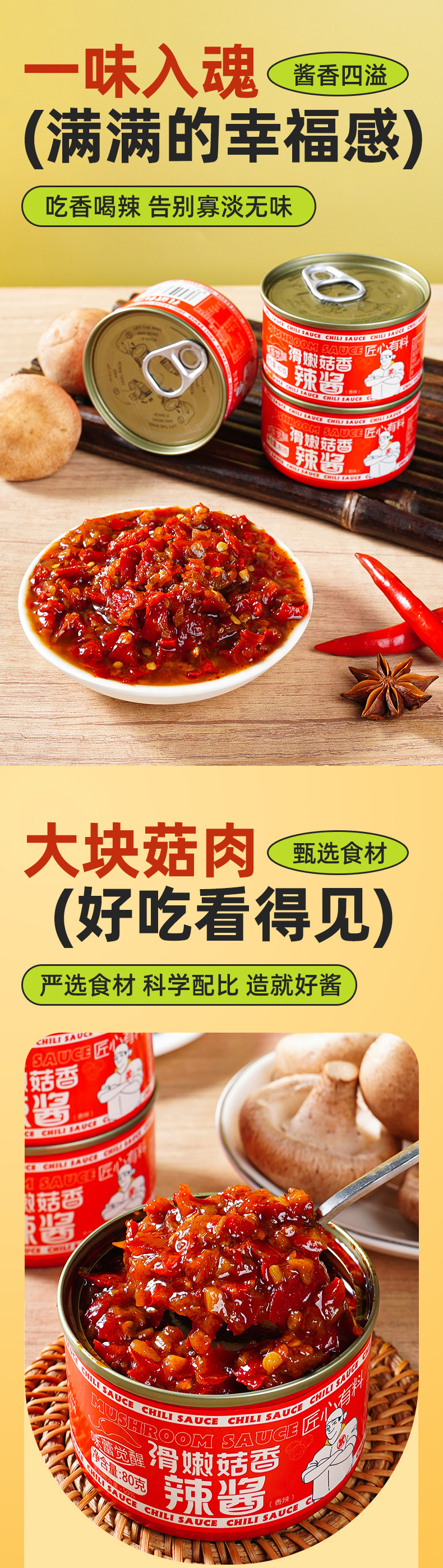 【每罐低至5元!滑嫩菇香辣酱】传统工艺匠心制作,好食材遇上好工艺,舌尖上的美食,辣爽下饭菜,拌饭酱拌面拌粉,下饭速即食香菇酱L