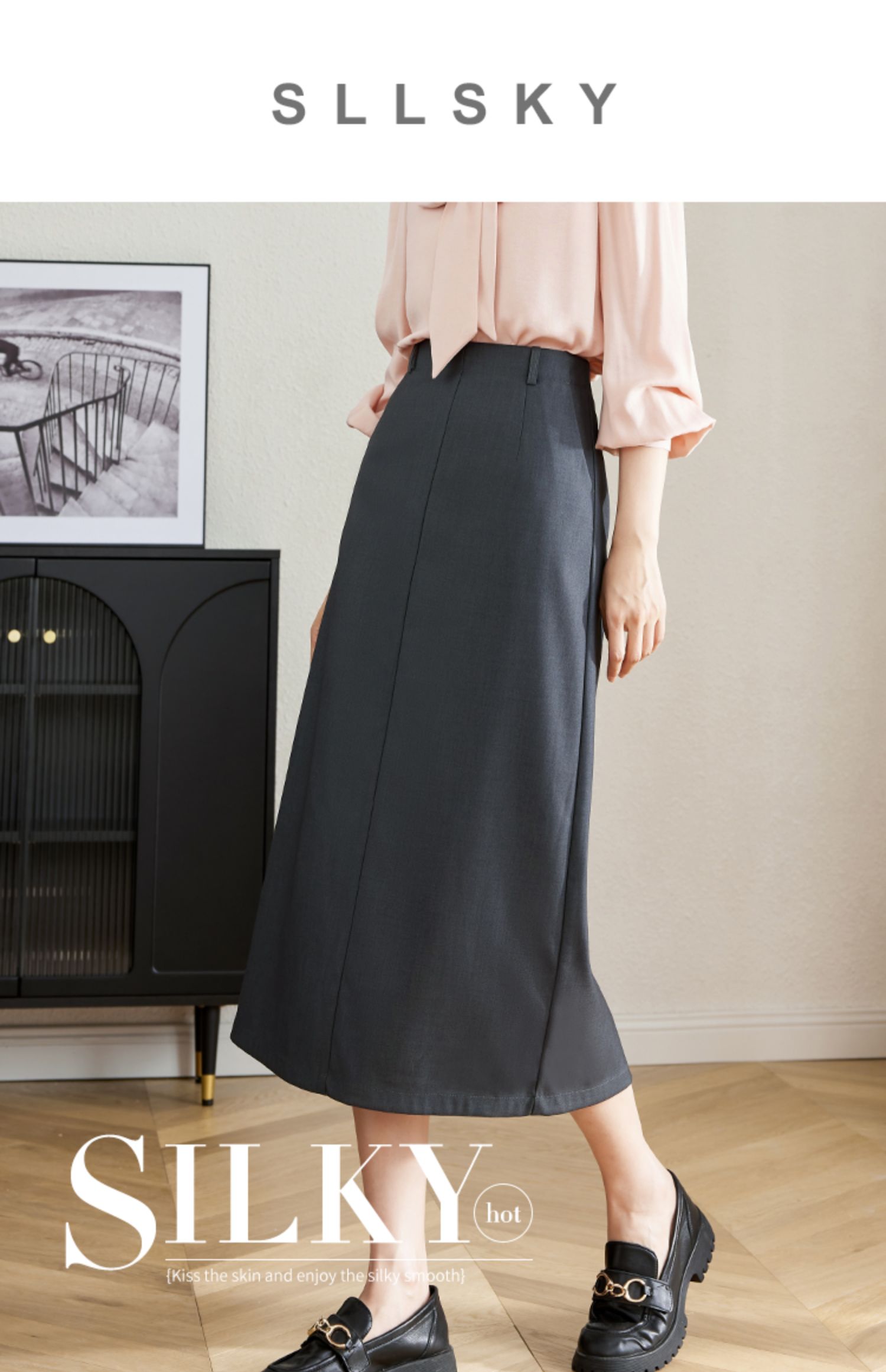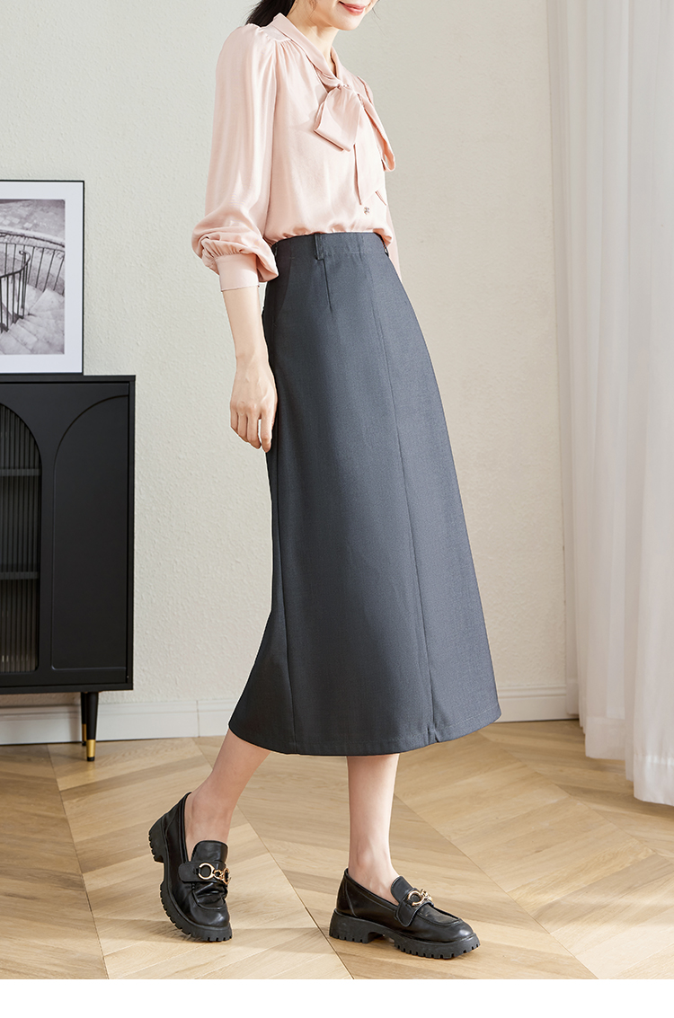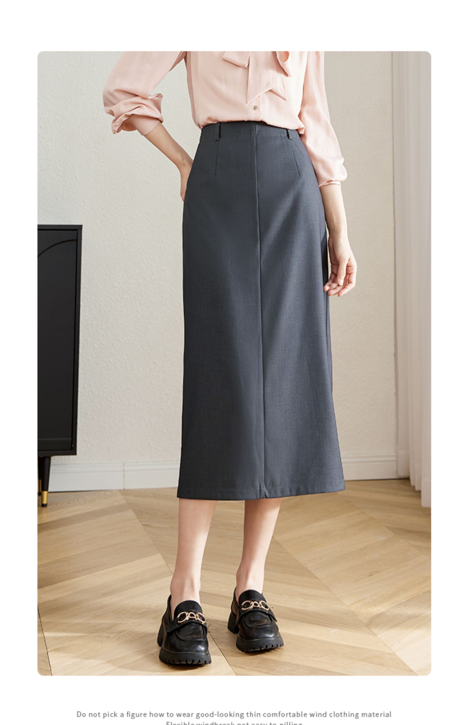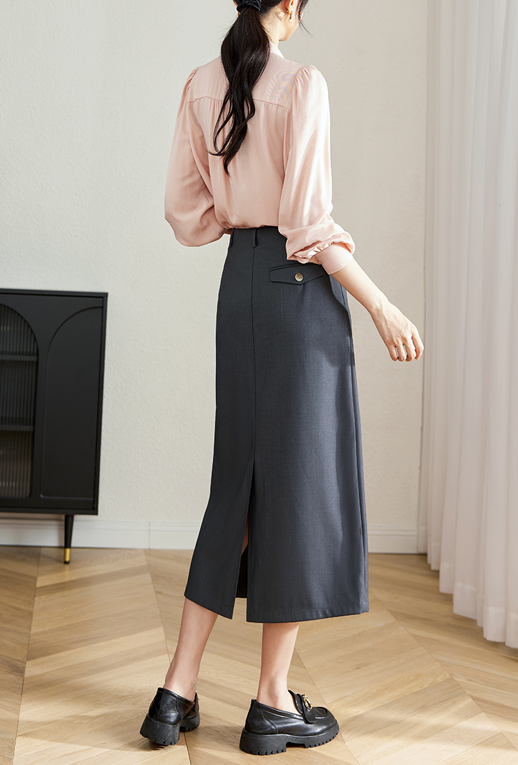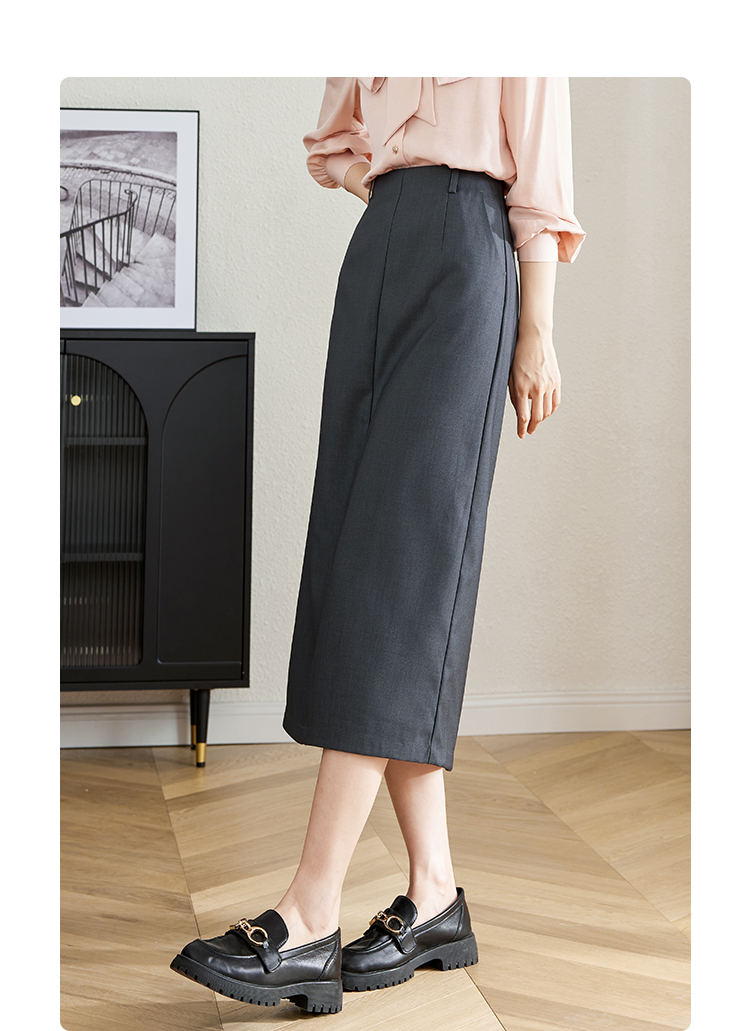 【专属特价】熙世界复古灰色中长款西装半身裙女秋新款通勤职场开叉直筒包臀裙