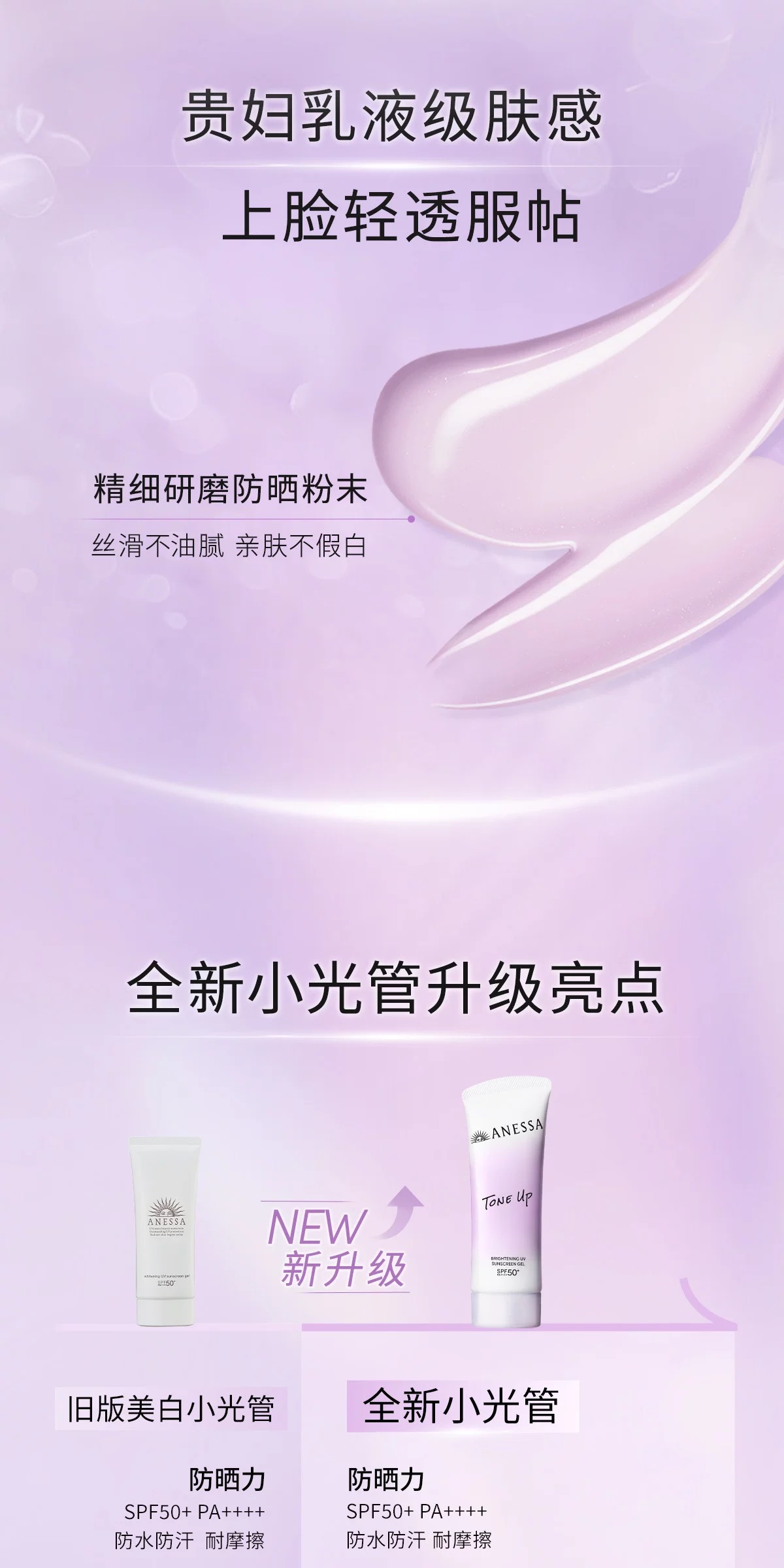 新品!日本安热沙Anessa2026春季安耐晒保湿提亮妆前隔离乳防晒霜90g