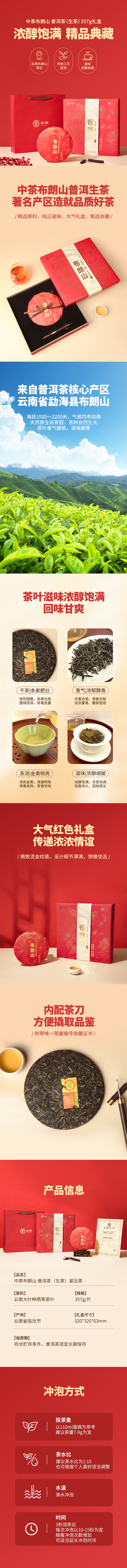 中粮中茶唯粹布朗山普洱茶礼盒357g