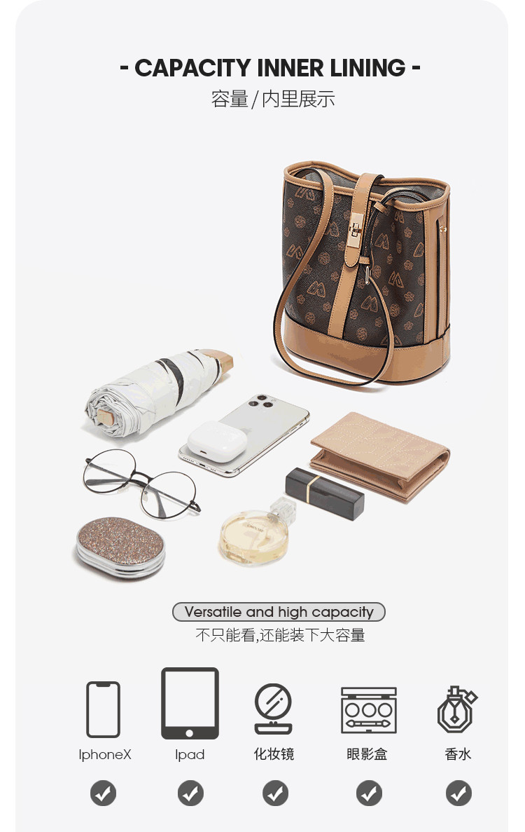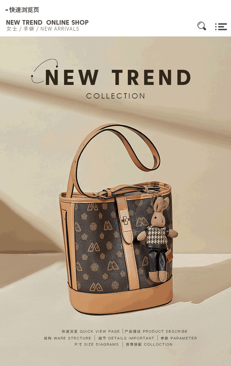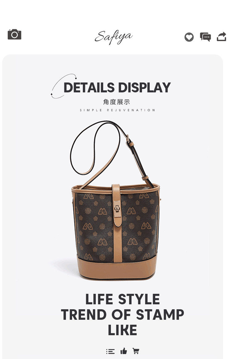 Safiya/索菲娅包包2022新款印花水桶包单肩包女式斜挎包手提女包 SF9140017Y