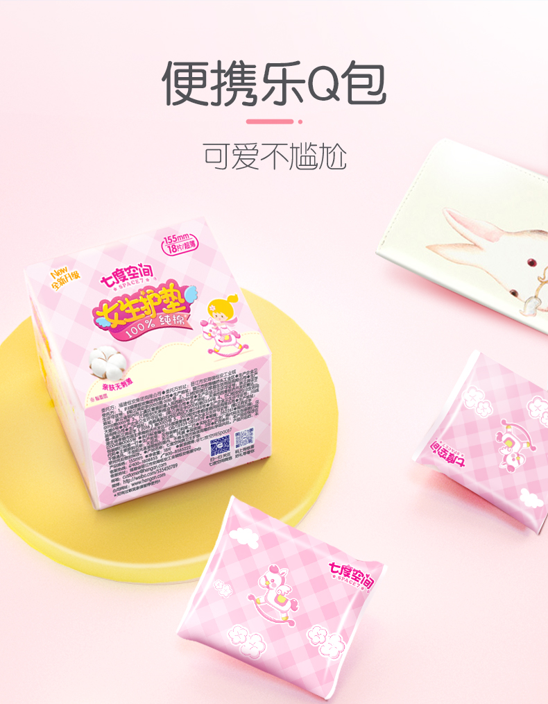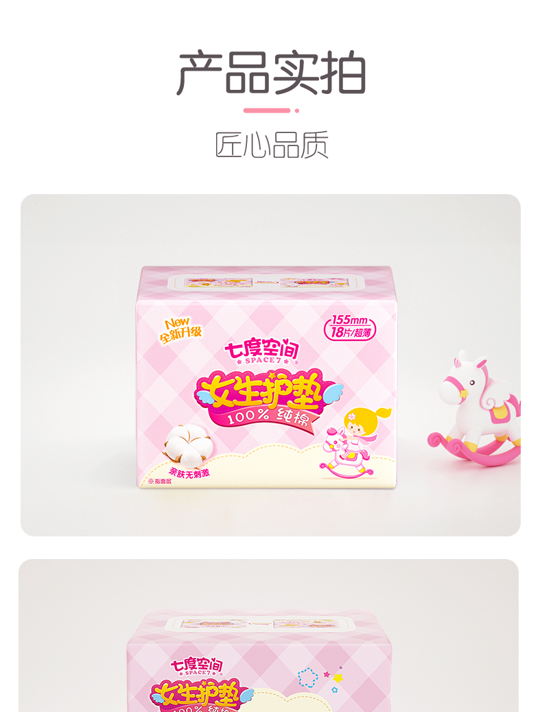 5QDBN618(包装)七度空间女生护垫纯棉透气超薄18片*5包装