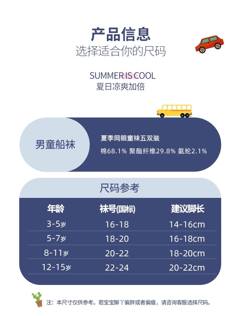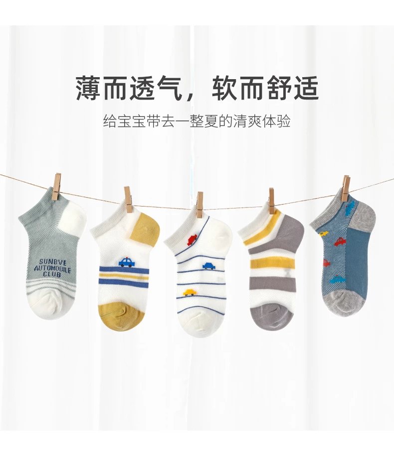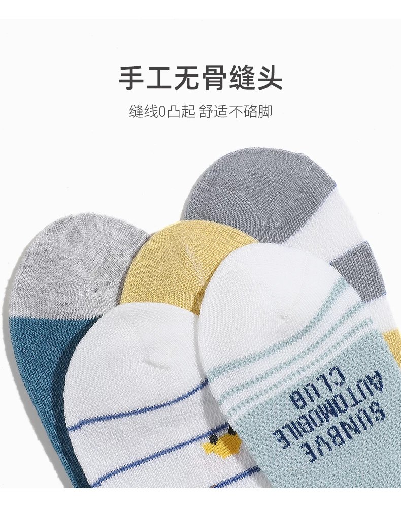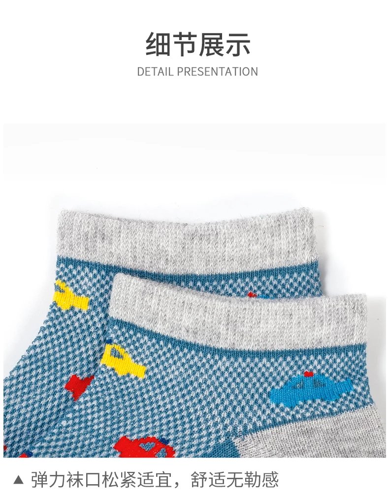 【产品卖点】袜子是网眼设计,轻薄透气,同时还有弹力,穿着不闷不勒脚;袜头无骨缝制工艺,减少摩擦,宝宝穿着非常的舒适。