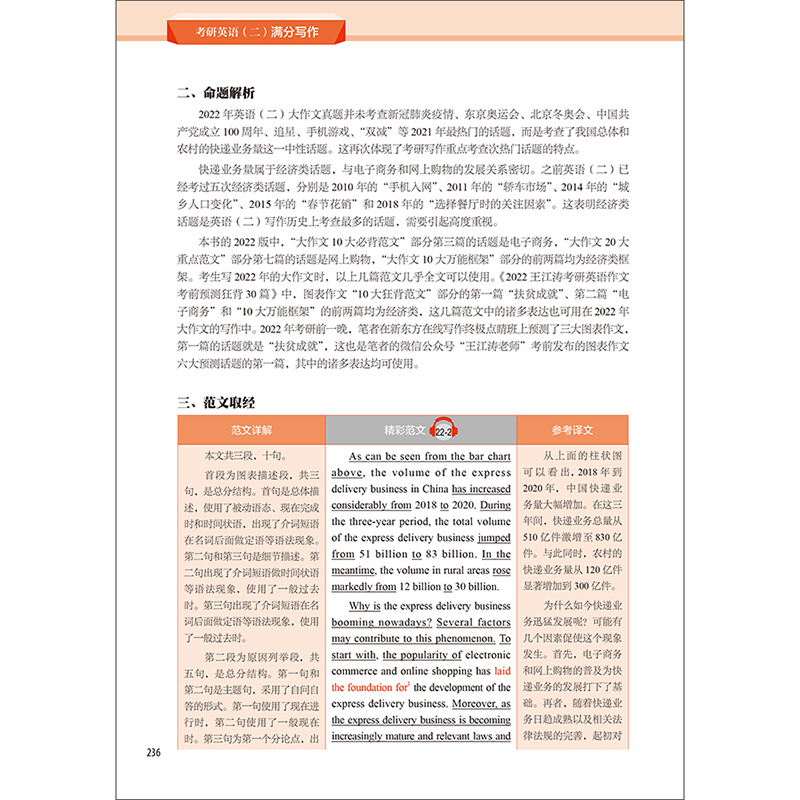3.历年写作真题深度剖析,高分范文逐一详解,考生佳作精彩点评;