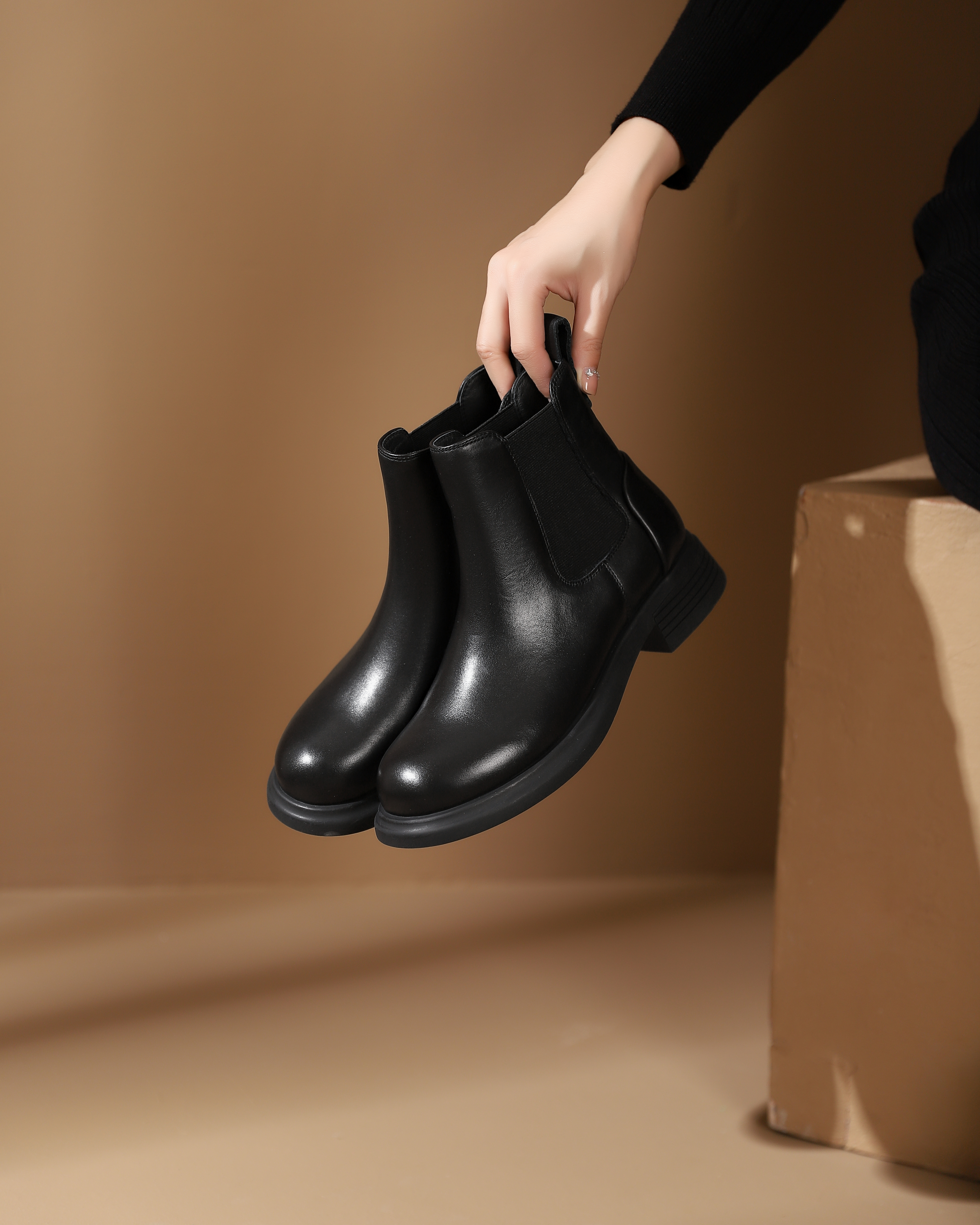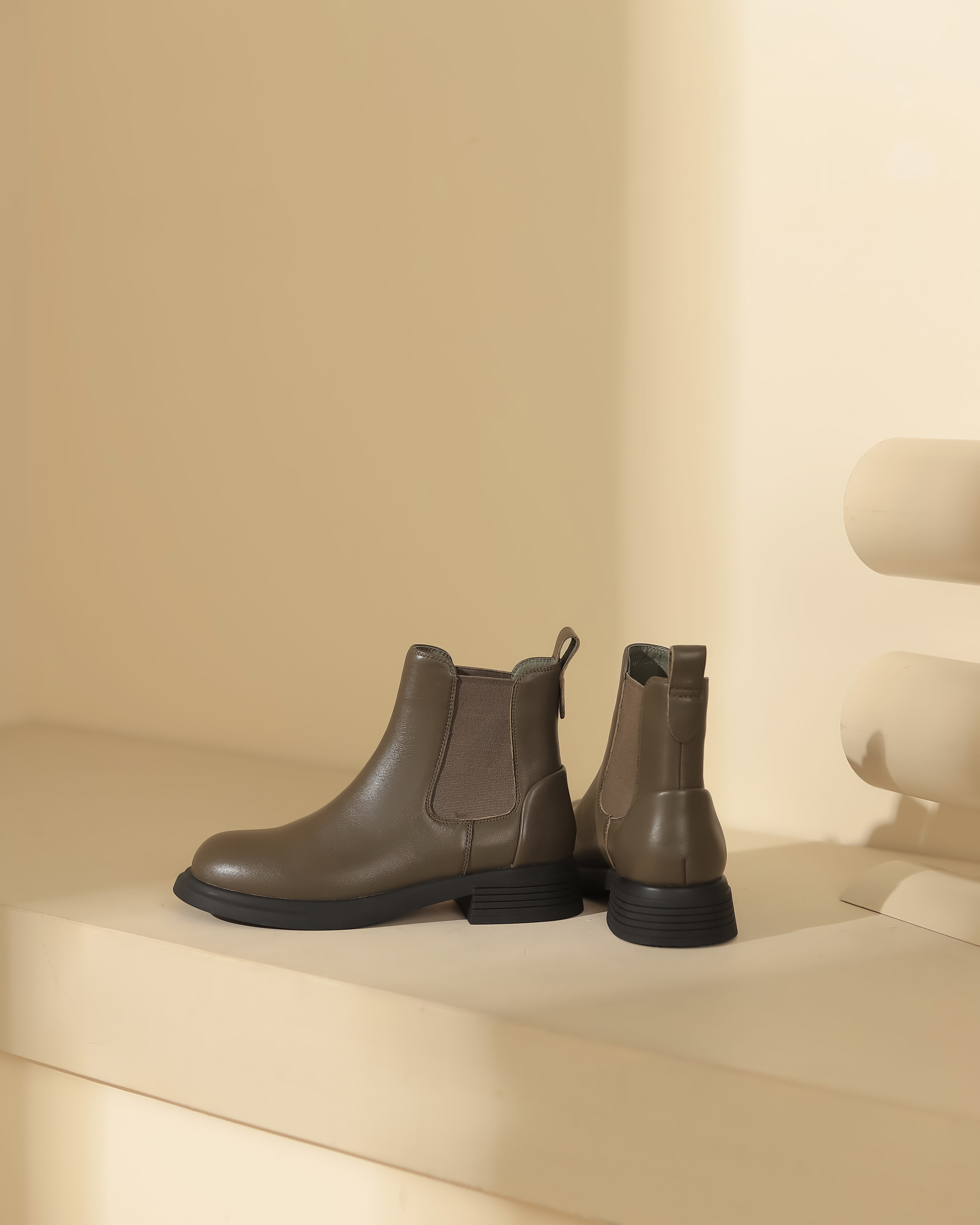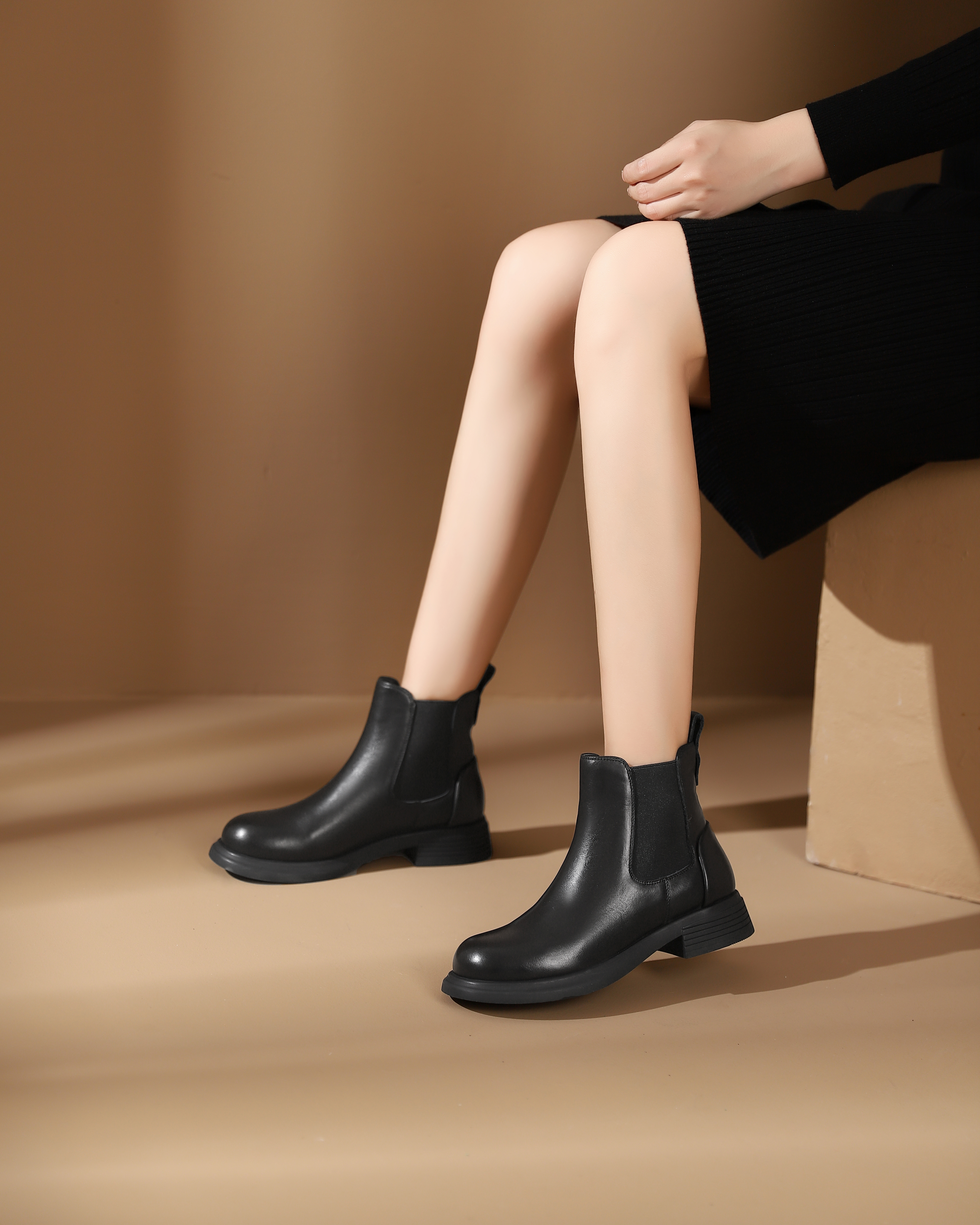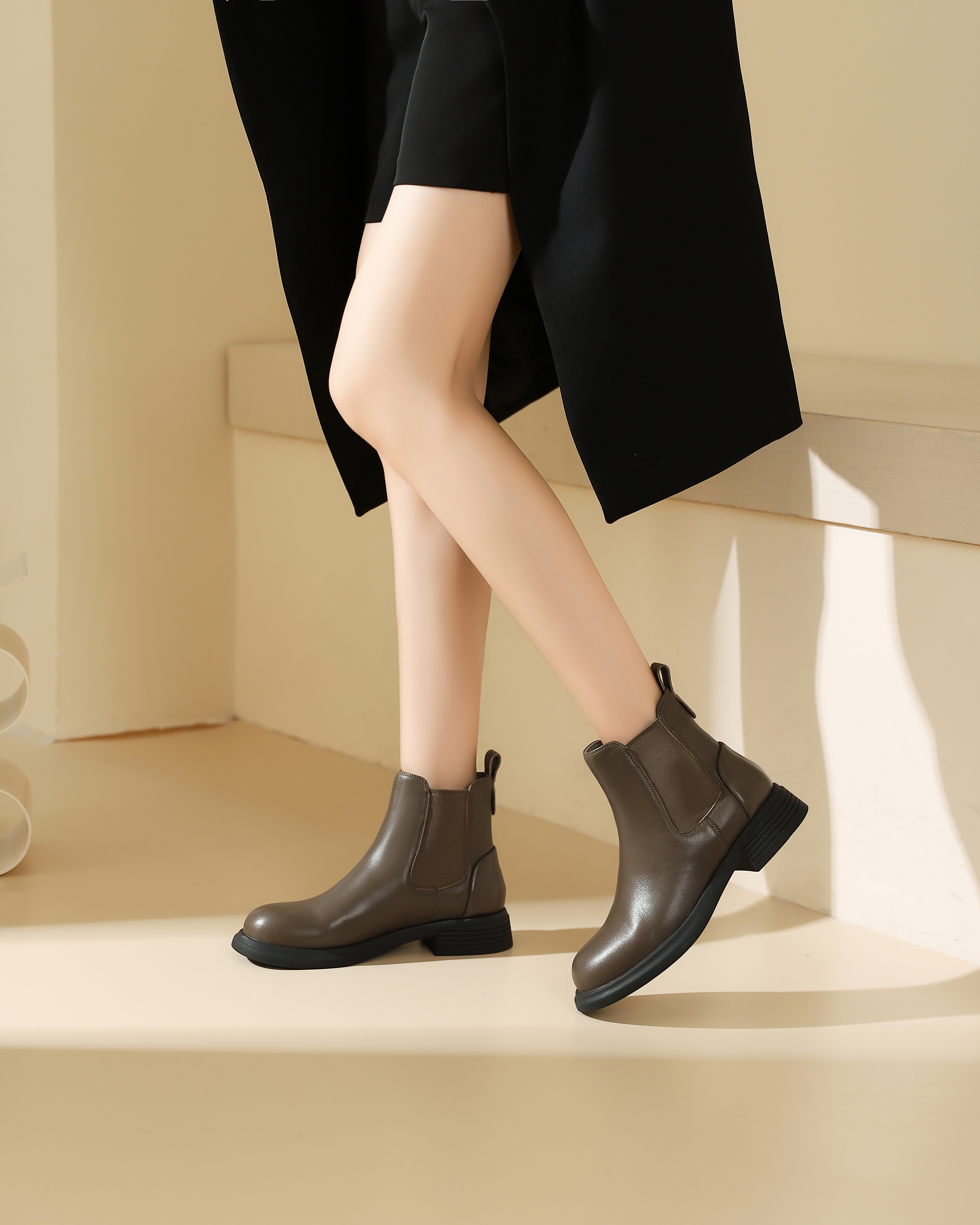西村名物2023秋季新品圆头厚底粗跟短靴切尔西靴X23DS4513101