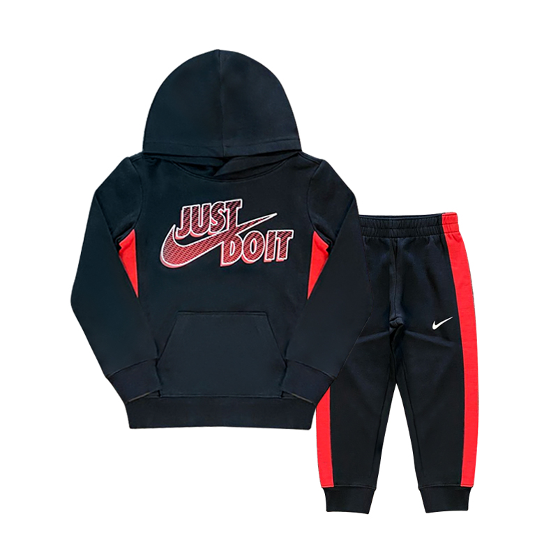 耐克-童衣类(冬)D0小童套头连帽卫衣套装正黑色