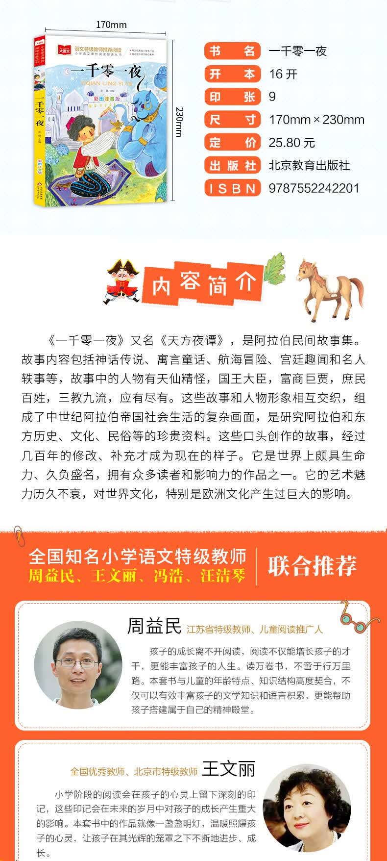 (仓发) 一千零一夜 彩图注音版 儿童文学 一二三年级课外阅读书必读世界经典文学少儿名著童话故事书 大语文系列 小学语文课外阅读经典丛书/北京教育出版社/9787552242201