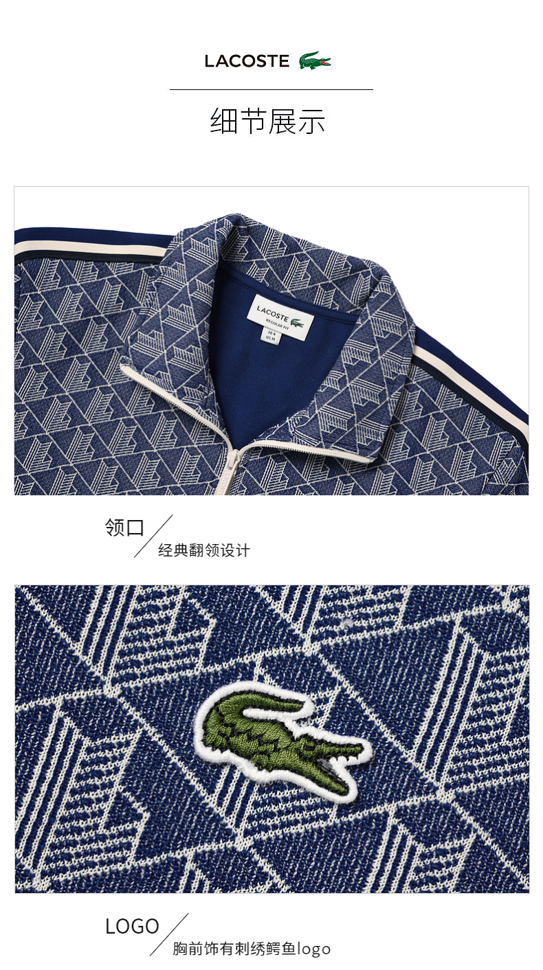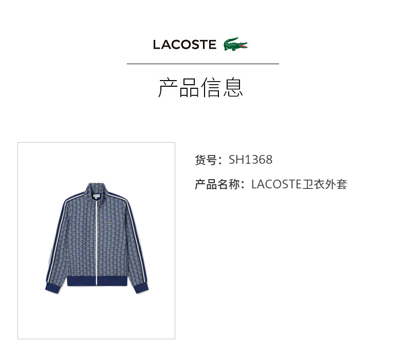 【海南专供价】Lacoste法国鳄鱼男装新款复古印花拉链卫衣外套SH1368-10