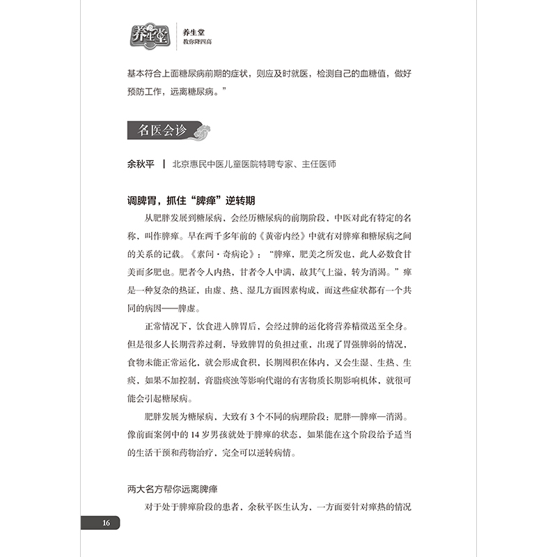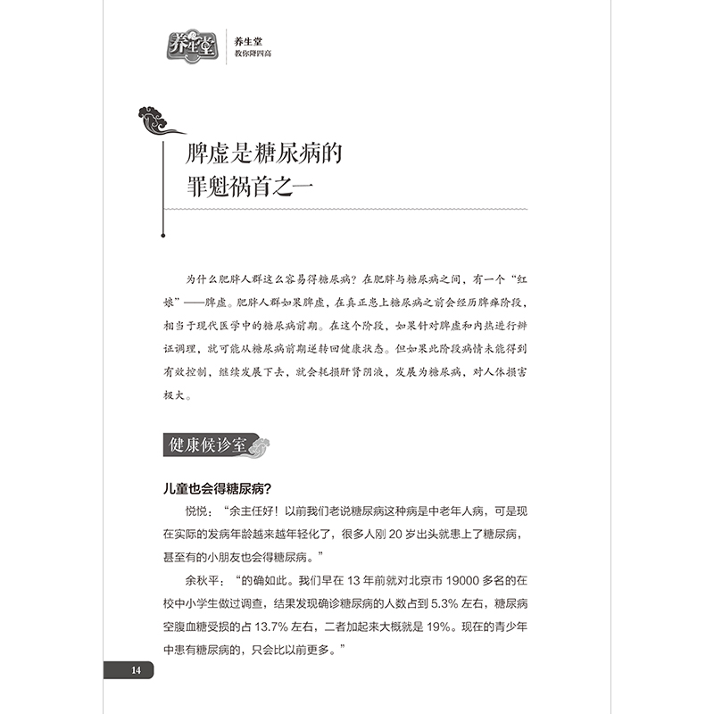 章“降糖”先“知糖”:你了解糖尿病吗?14 脾虚是糖尿病的罪魁祸首之一儿童也会得糖尿病? / 14调脾胃,抓住“脾瘅”逆转期 / 16消瘅阶段,要注意养肝肾 / 18胃强脾弱,该怎么办 / 20血糖高?试试降糖的穴位组合 / 21