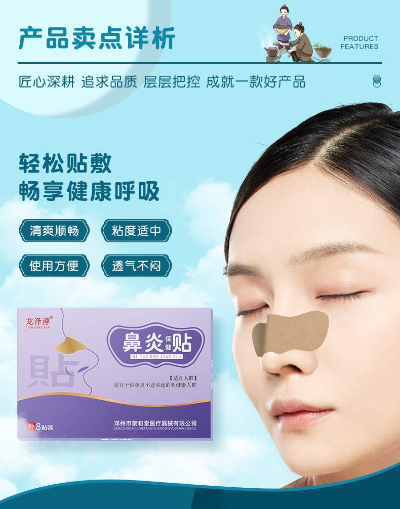 【告别鼻子不适】鼻炎保健贴 清爽通气畅快呼吸 中药草本萃取 科学配比 温和调养 8贴/盒