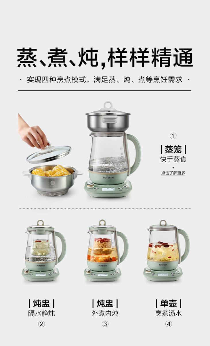 北鼎养生壶家用多功能全自动玻璃电炖煮茶壶可预约蒸早餐养身K165
