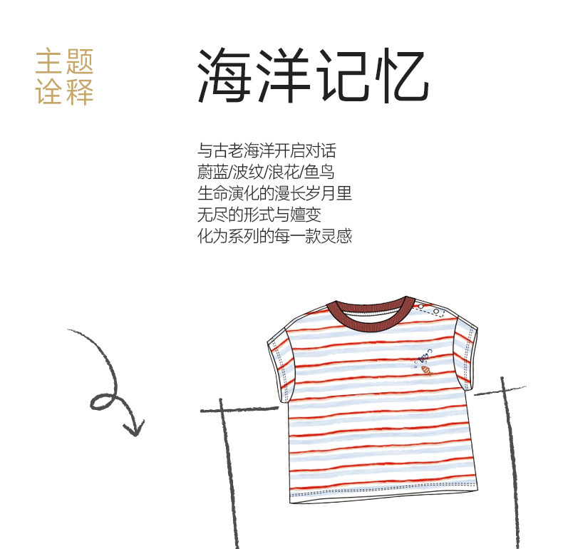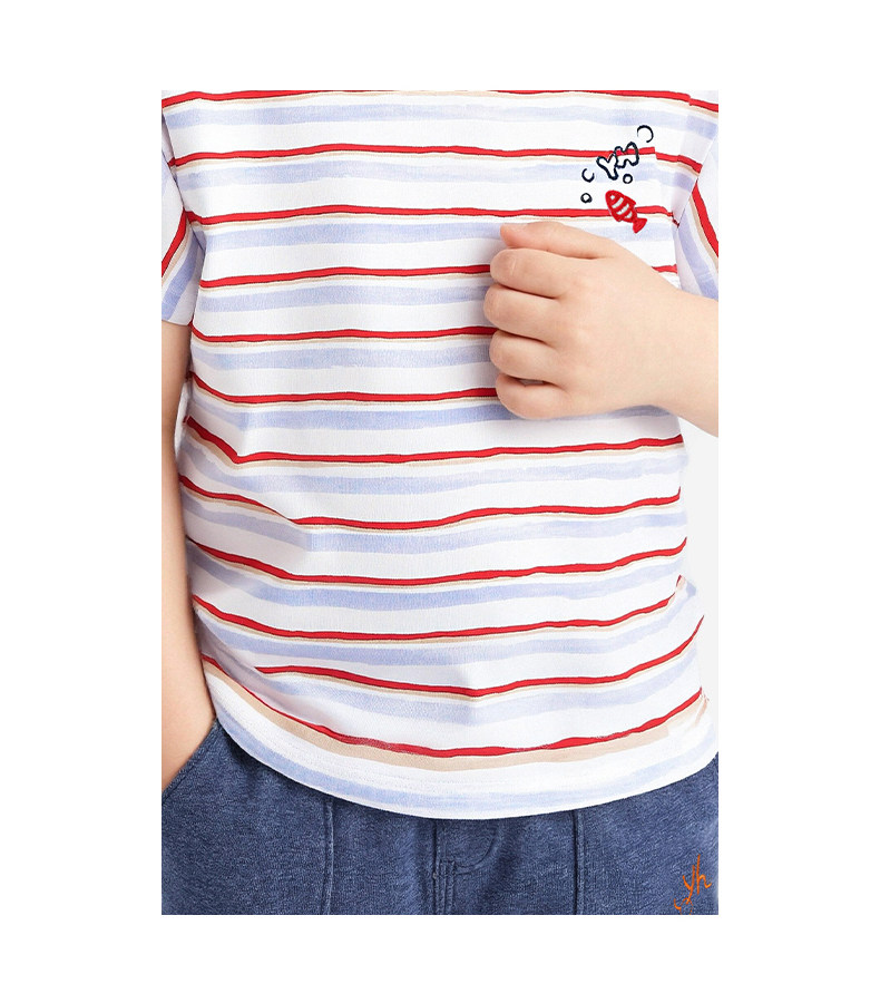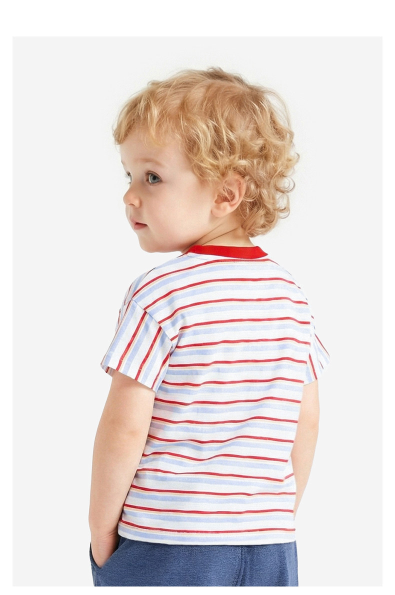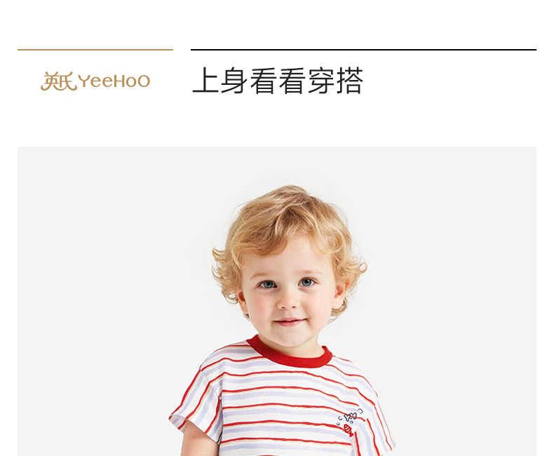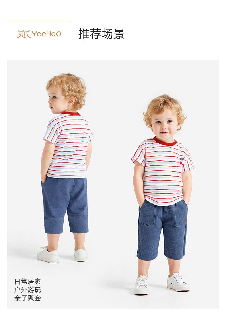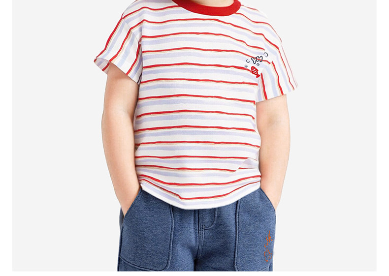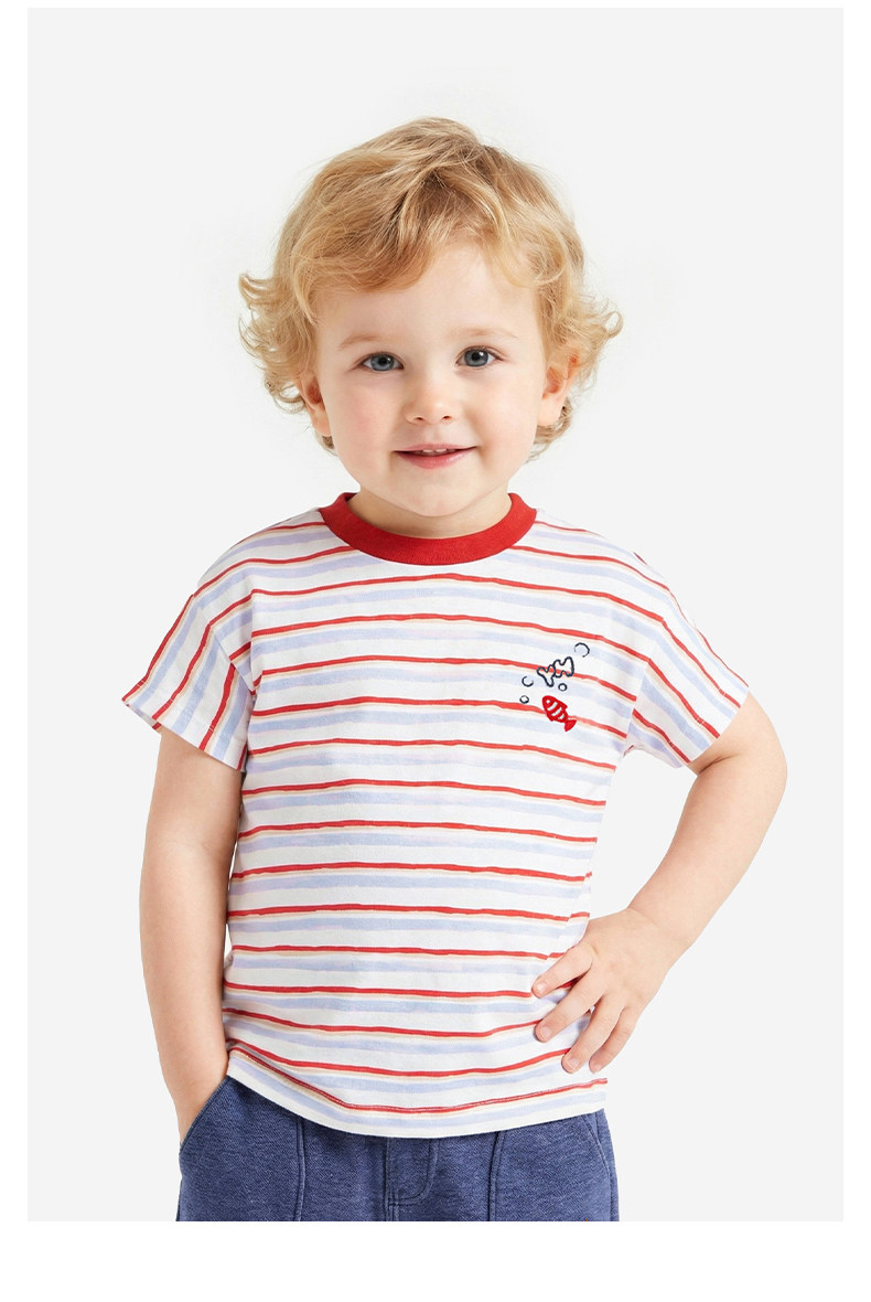 英氏儿童衣服男童夏季条纹短袖T恤防蚊圆领套头衫YRTCJ2S046A